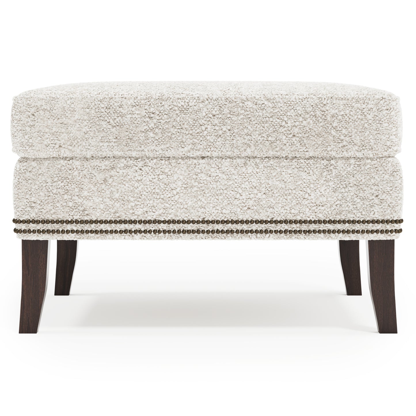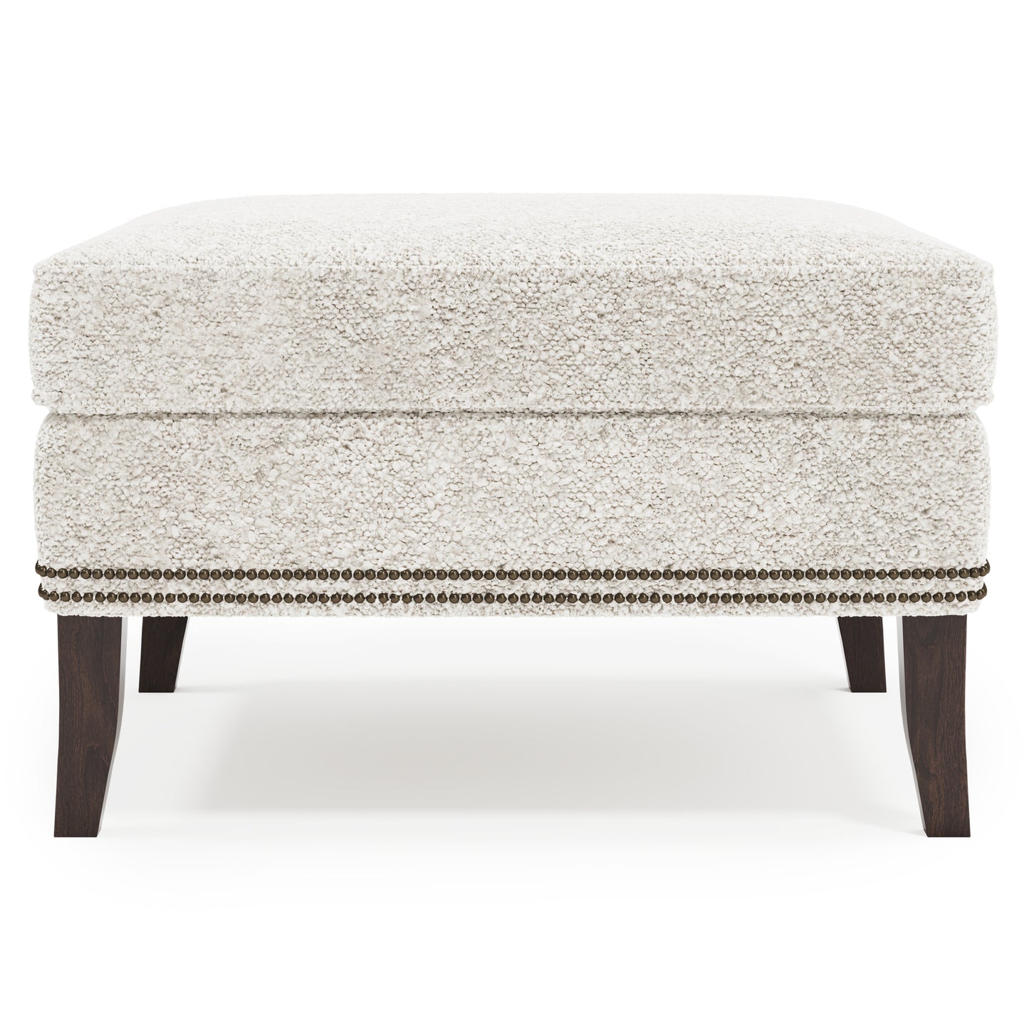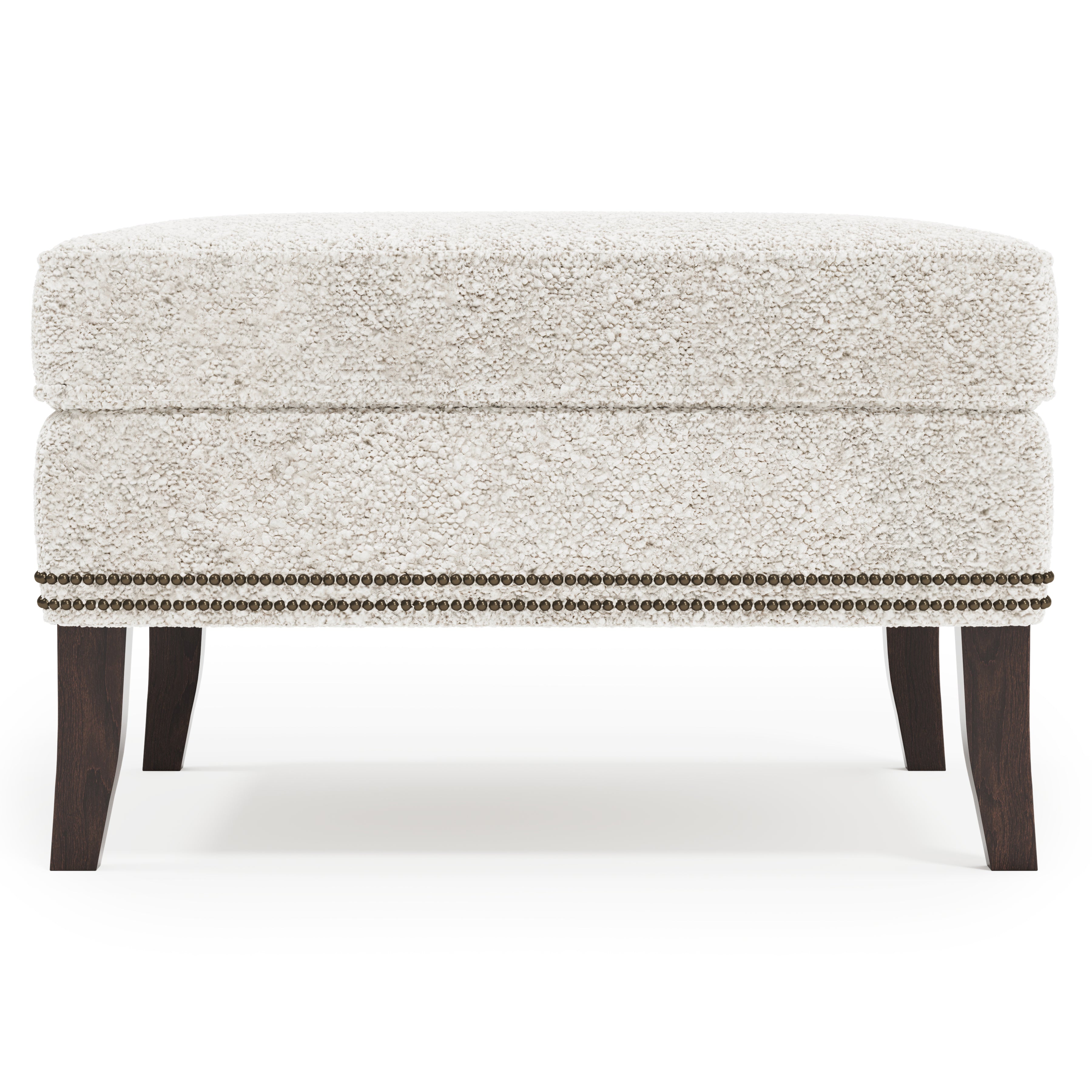 The Kingston ottoman presents a traditional design with a relaxed and welcoming feel. Sophisticated design details include nailhead trim and welting on the luxuriously upholstered cushion. Subtle saber legs add a touch of modern appeal.