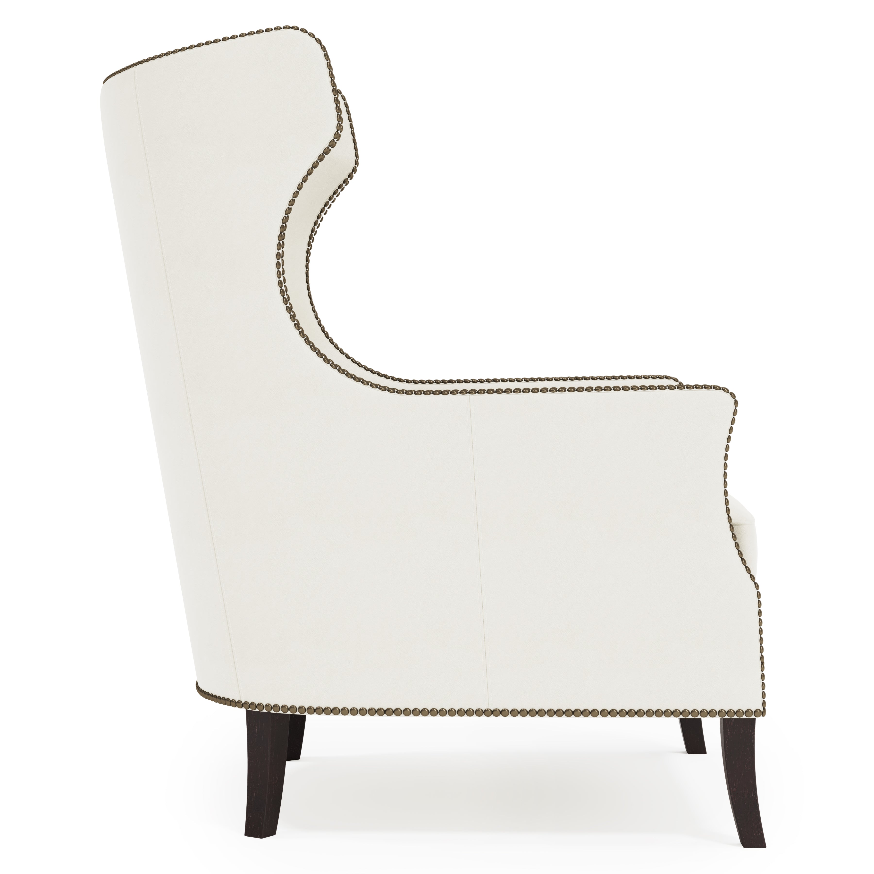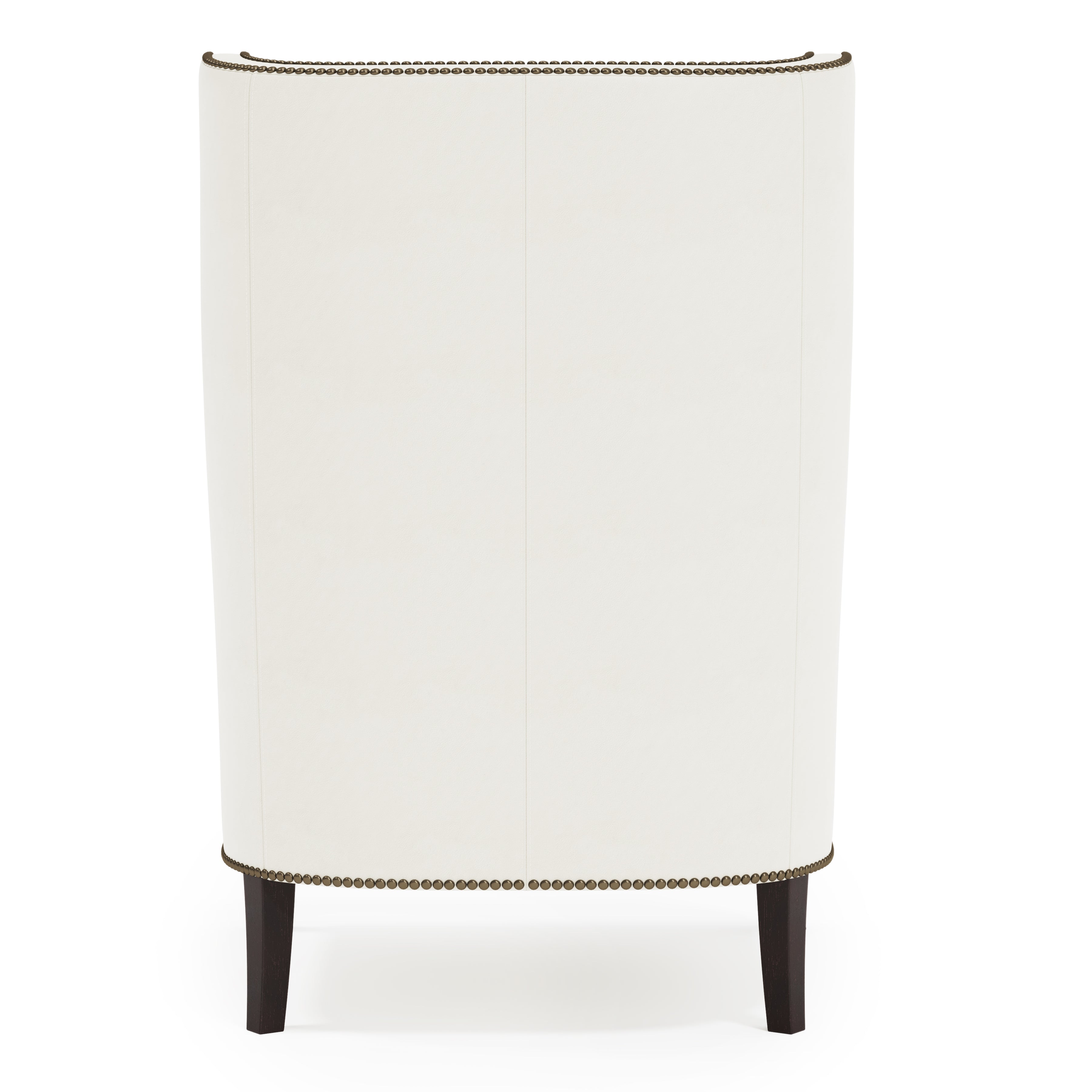 With its stately aesthetic, the Kingston chair conveys a promise of lasting stature and luxurious comfort. The high statuesque back gives way to gracefully arched wings that drift into a luxe down cushioned seat. Nailhead trim adorns the smooth leather for a refined touch.