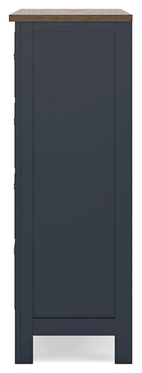 Add homespun charm to your restful retreat. A modern take on a timeless silhouette, this chest of drawers pairs a dark slate blue finish with a light brown top. Drawer fronts and legs in a classic Shaker style bring an air of beautiful simplicity to the bedroom. Whether it's part of a charmingly curated guest suite or a casually carefree kids room, this chest is a welcome addition.