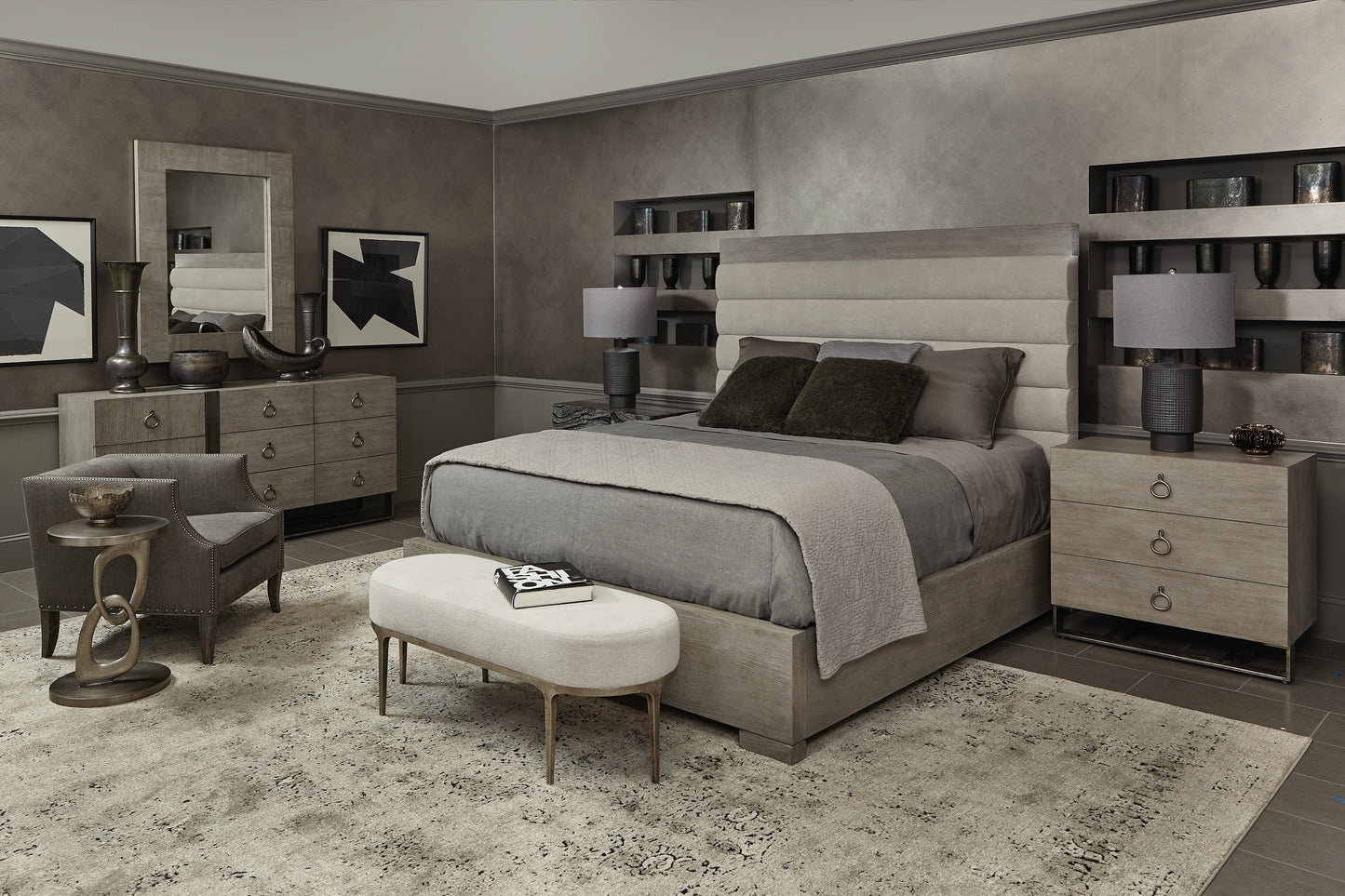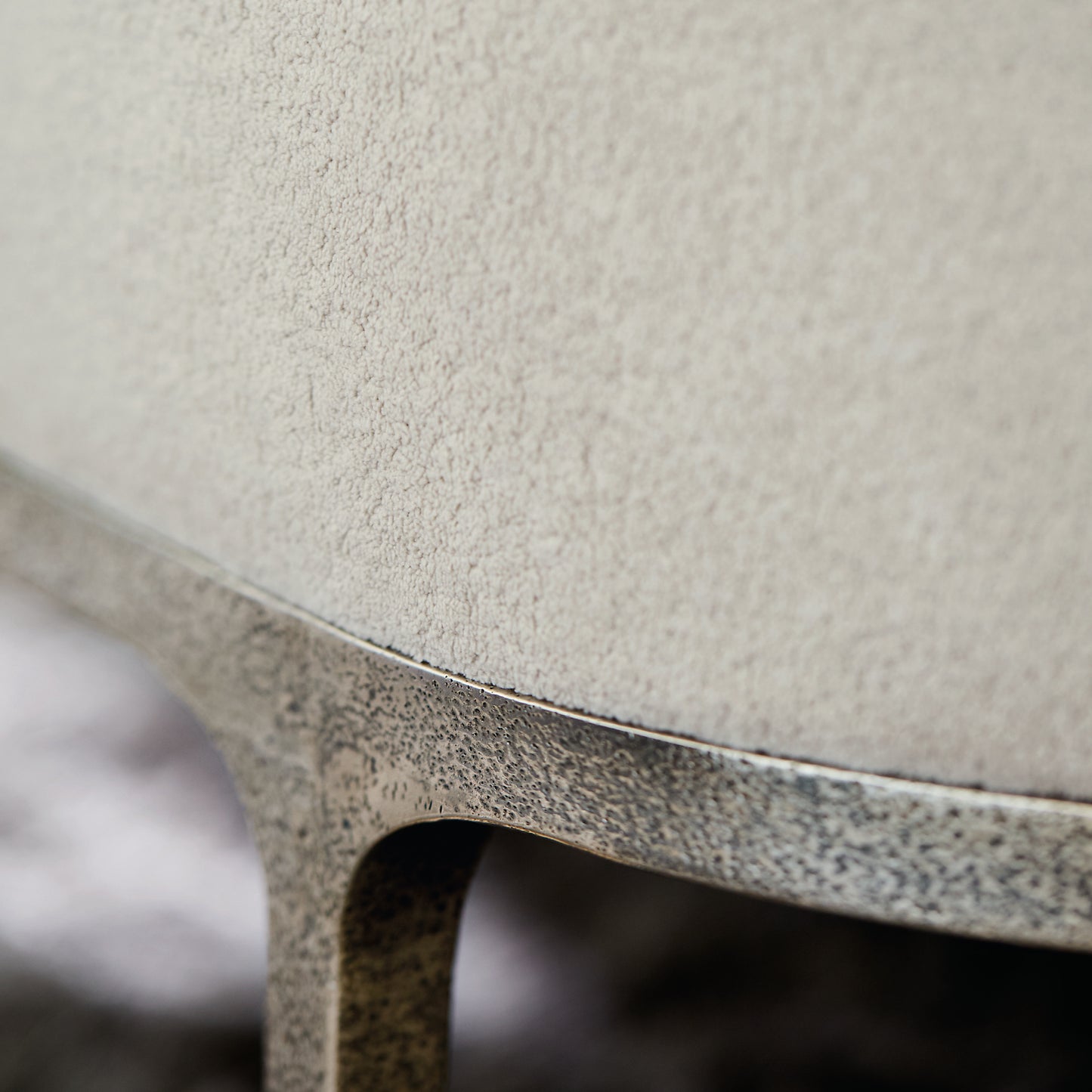 With its flawless artistry and understated elegance, Linea sets a new standard for rustic modern collections. The clean transitional form of the Linea bench allows the unique combination of materials and textures to take center stage. The sleek cast aluminum base is presented in a Textured Graphite finish obtained through a multi-step process. Fabric in a soft, neutral tone is the perfect complement to the heavily textured metals.