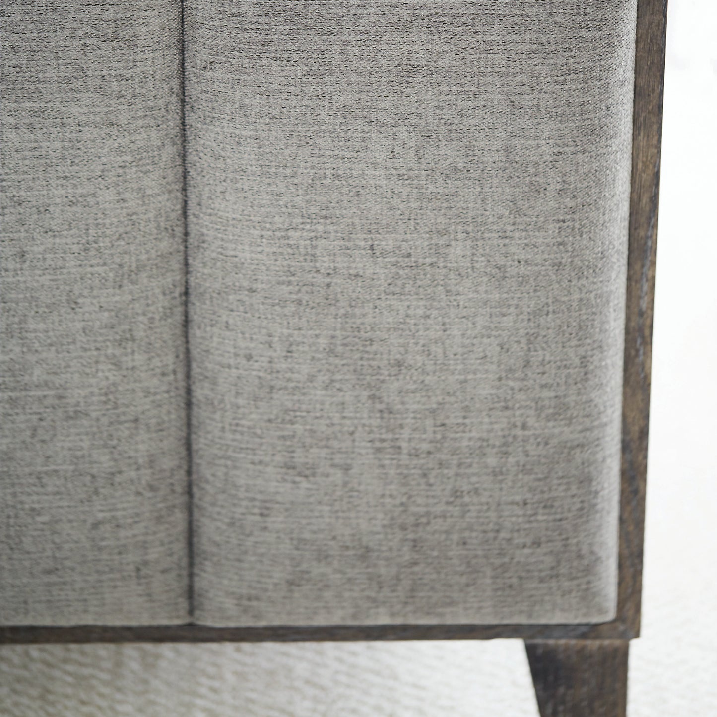 With clean lines and casual finishes, the Linea upholstered panel bed delivers rustic modern style with a high level of sophistication. The wood frame and side panels feature a Cerused Charcoal finish that complements the soft neutral tone of the fabric on the headboard and footboard. The contrasting textures add visual interest, while symmetrical vertical channeling completes the contemporary look.