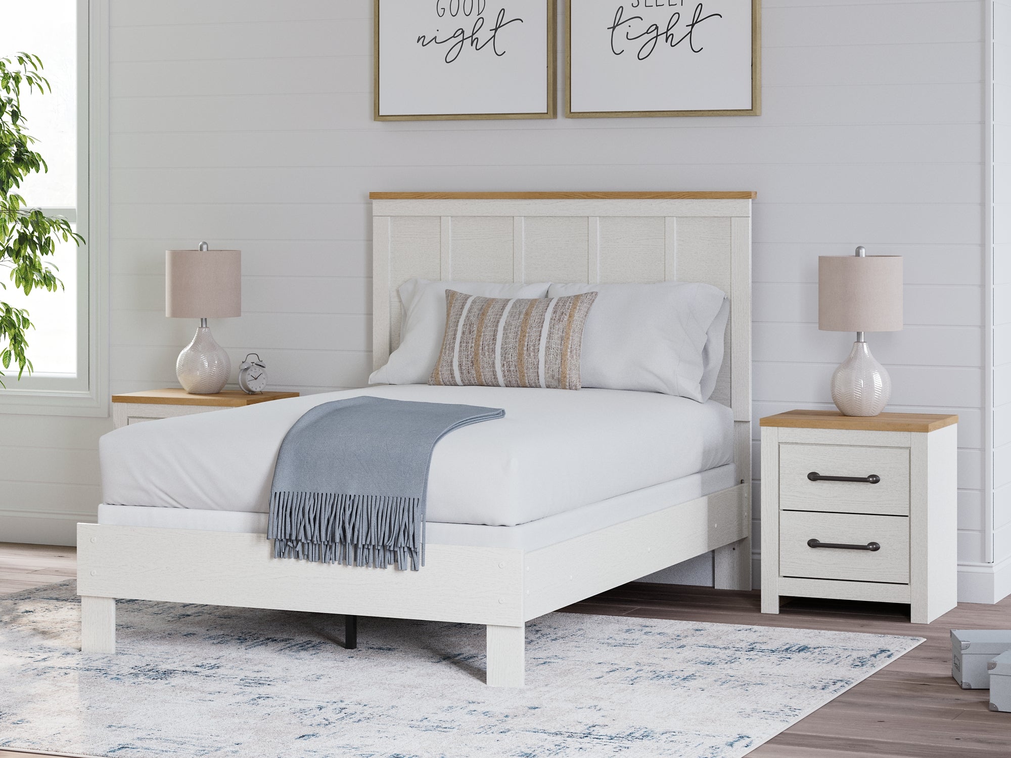 Create a serene countryside retreat with this full bed. A two-tone design effortlessly adds farmhouse style, while the clean-lined panel headboard enhances its charming appeal. Looking for furniture that offers a peaceful escape from your daily routine? This bed is just what you need.