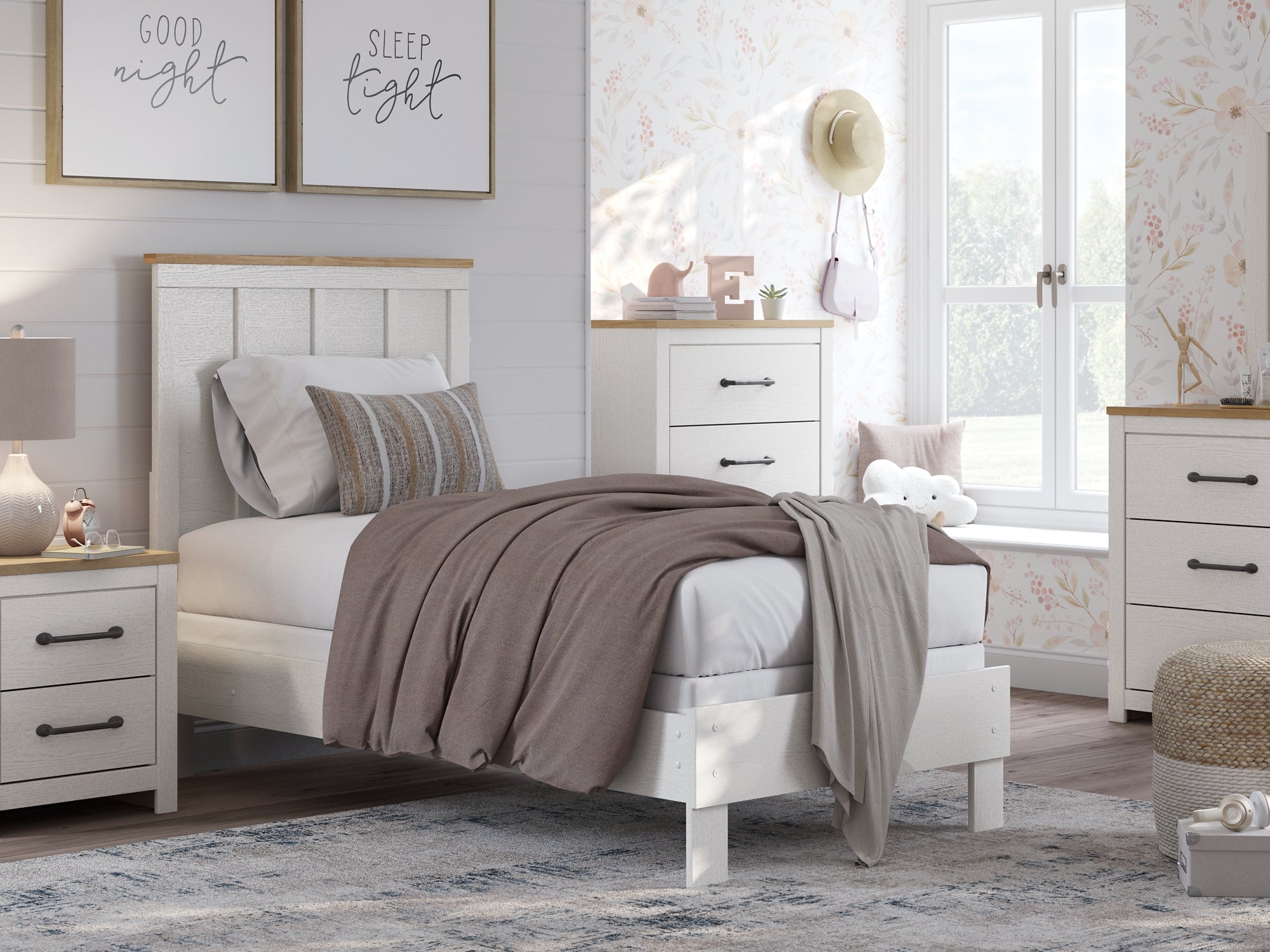Create a serene countryside retreat with this bedroom package. The two-tone design effortlessly adds farmhouse style, while framed drawer fronts with pewter-tone handles enhance its charming appeal. Looking for furniture that offers a peaceful escape from your daily routine? This set is just what you need.