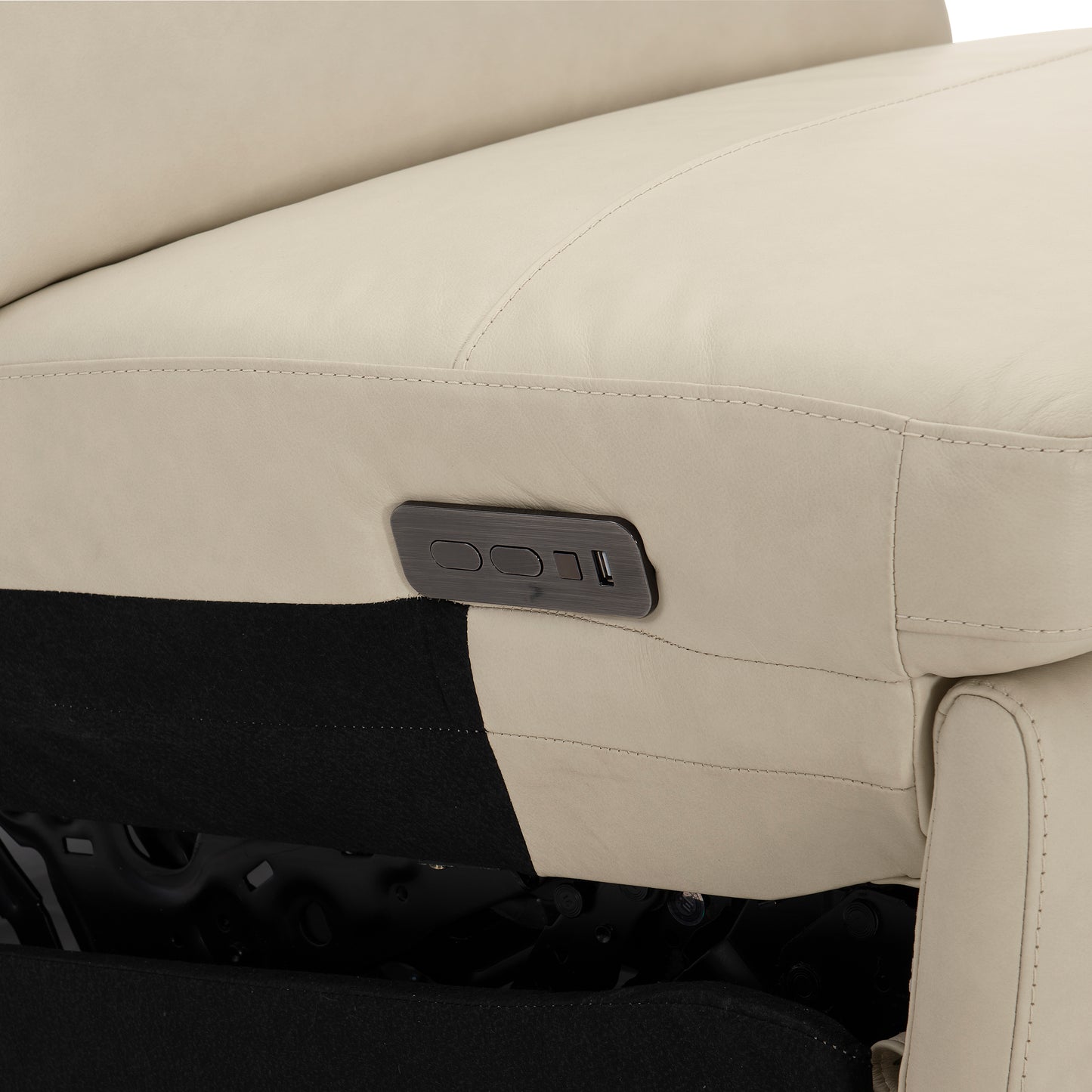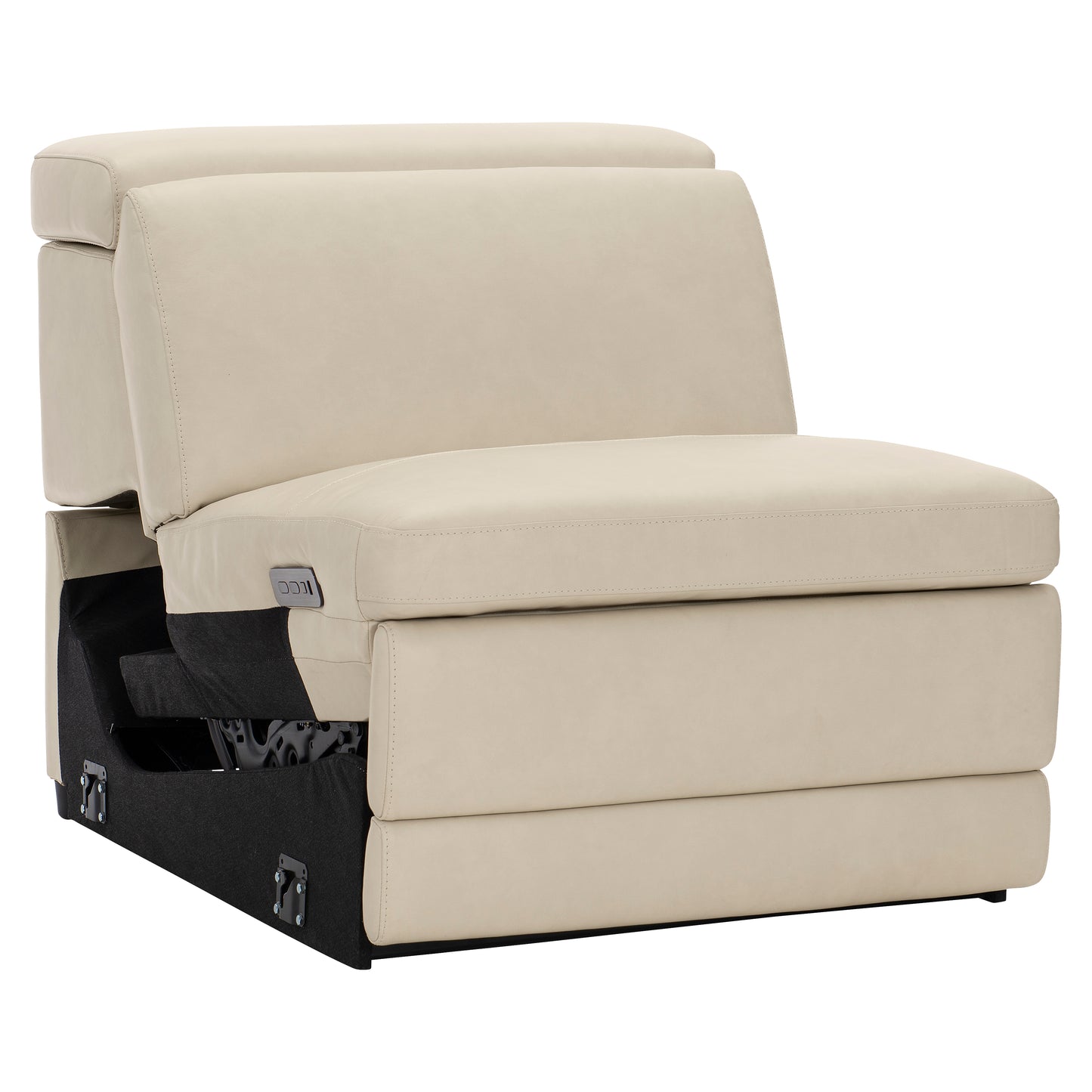 The ultimate in deep relaxation, the Lioni armless chair features fine leather upholstery and power motion technology. With a power headrest and power footrest, it offers a range of luxurious seating positions. A single USB port gives the option to recharge while reclining.