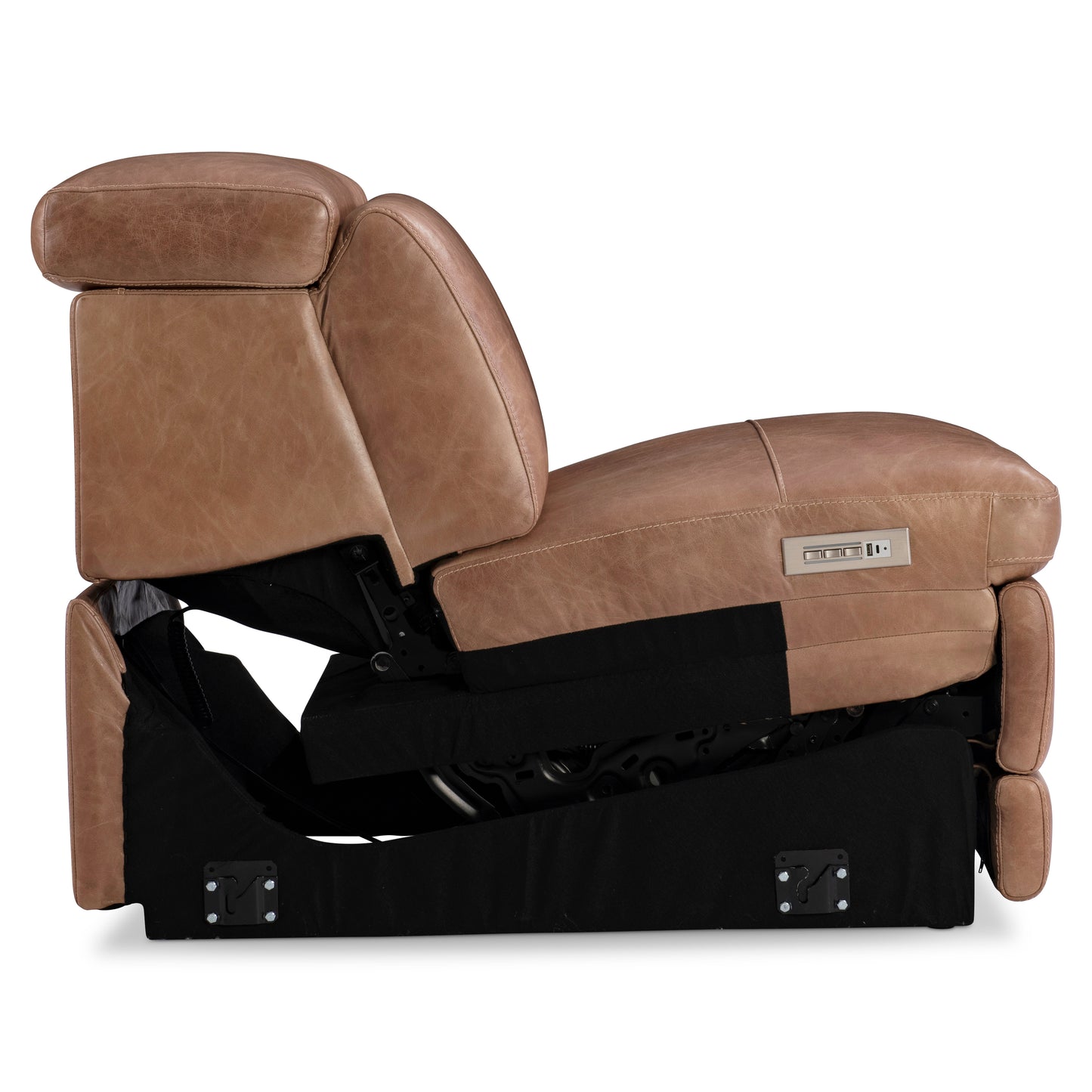 The ultimate in deep relaxation, the Lioni armless chair features fine leather upholstery and power motion technology. With a power headrest and power footrest, it offers a range of luxurious seating positions. A single USB port gives the option to recharge while reclining.