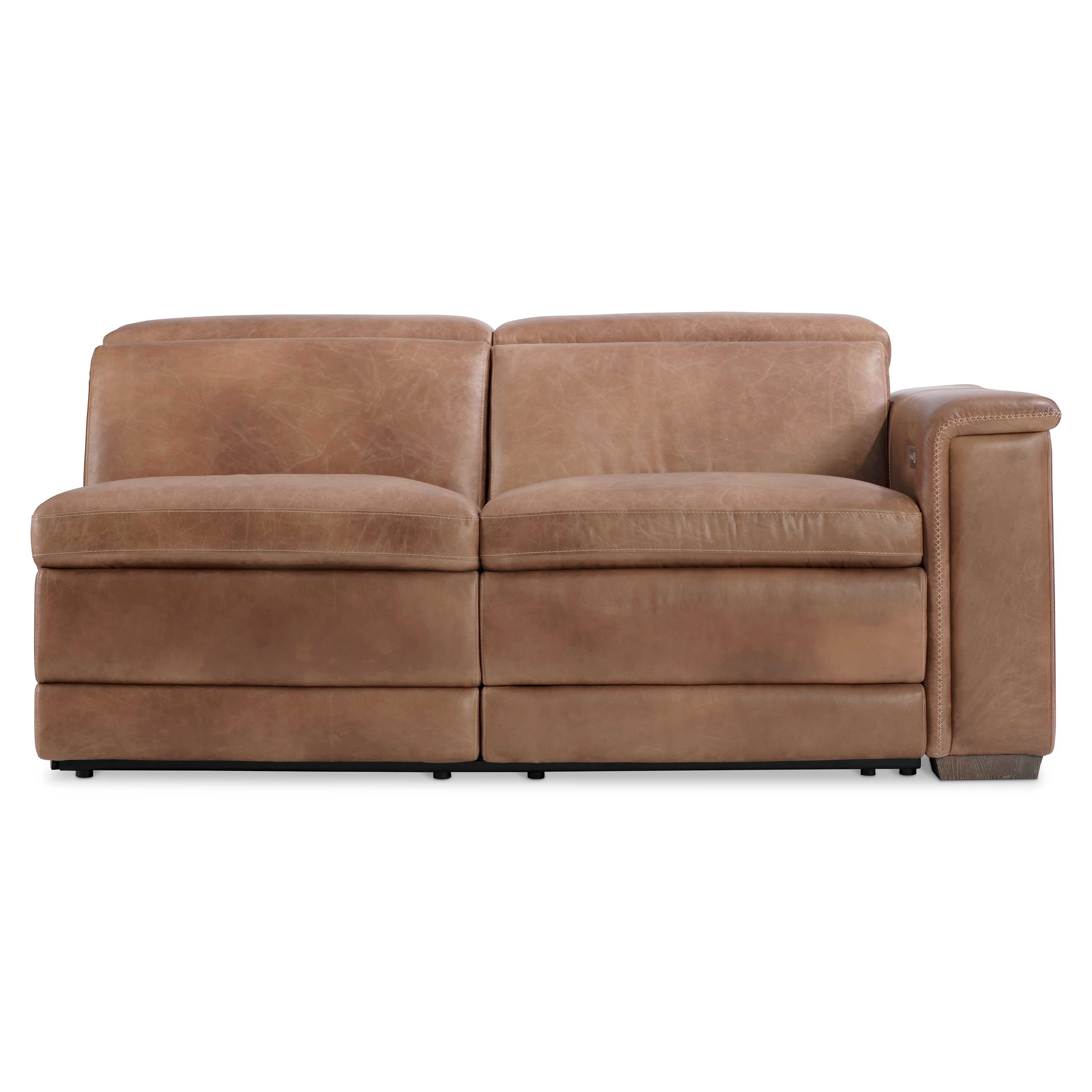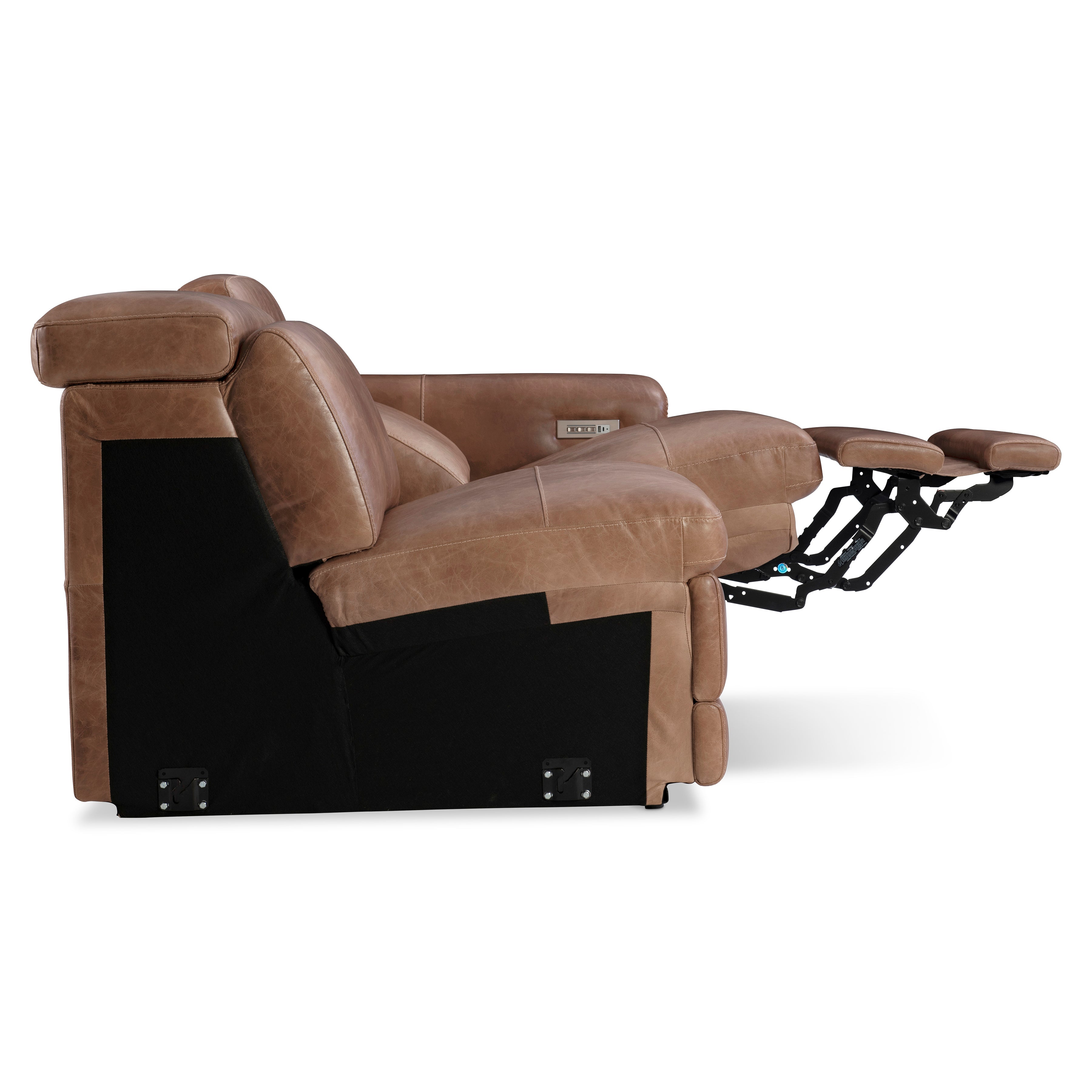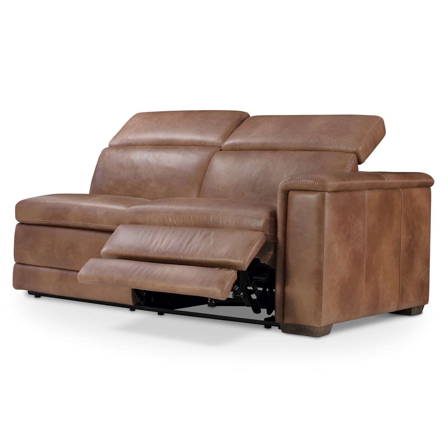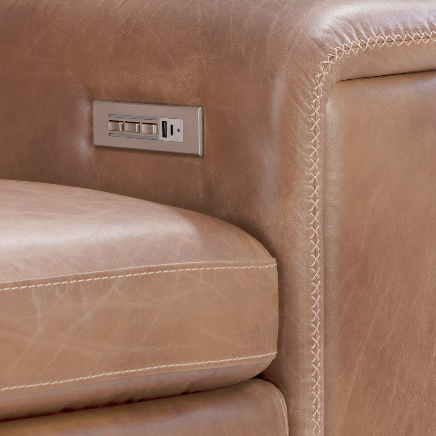 The ultimate in deep relaxation, the Lioni right arm loveseat features fine leather upholstery and power motion technology. A range of luxurious seating positions is at your fingertips. One seat fully reclines with a power headrest and footrest, while the other seat offers a pop-up headrest. A single USB port gives the option to recharge while reclining.