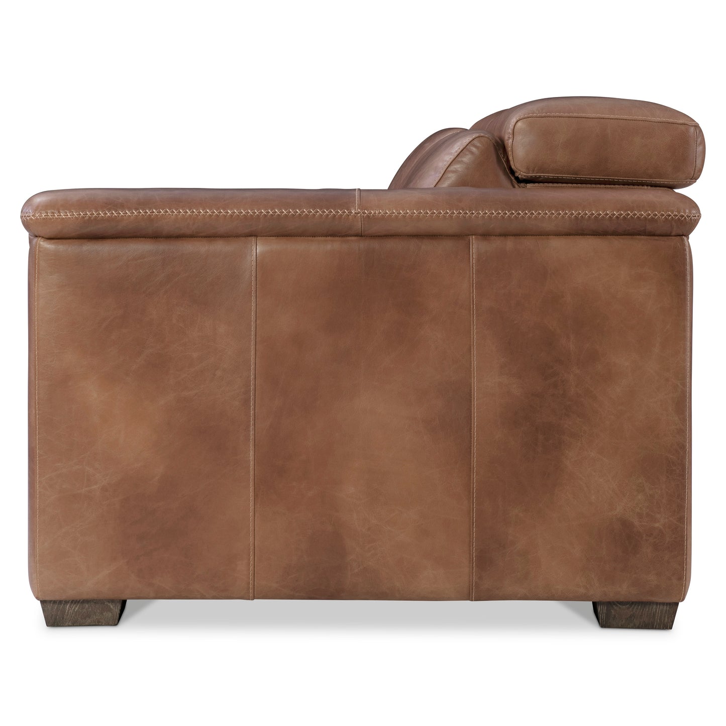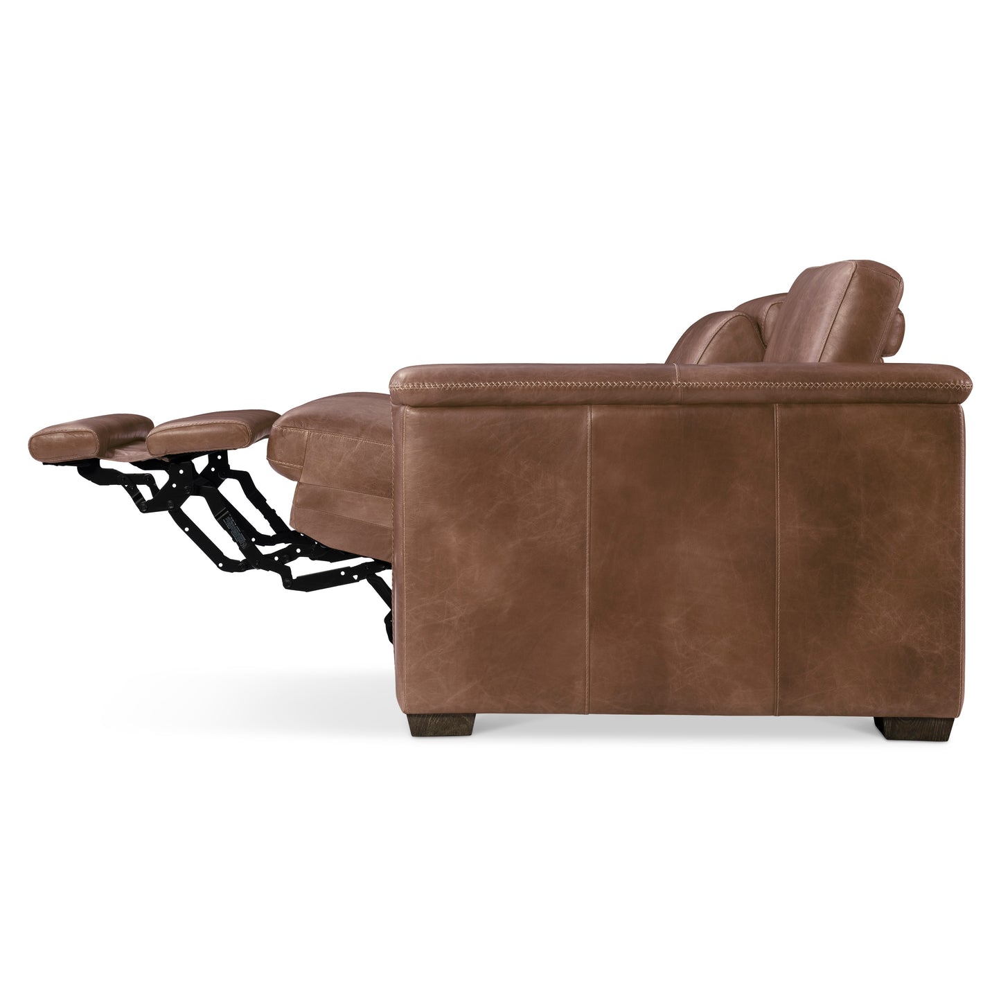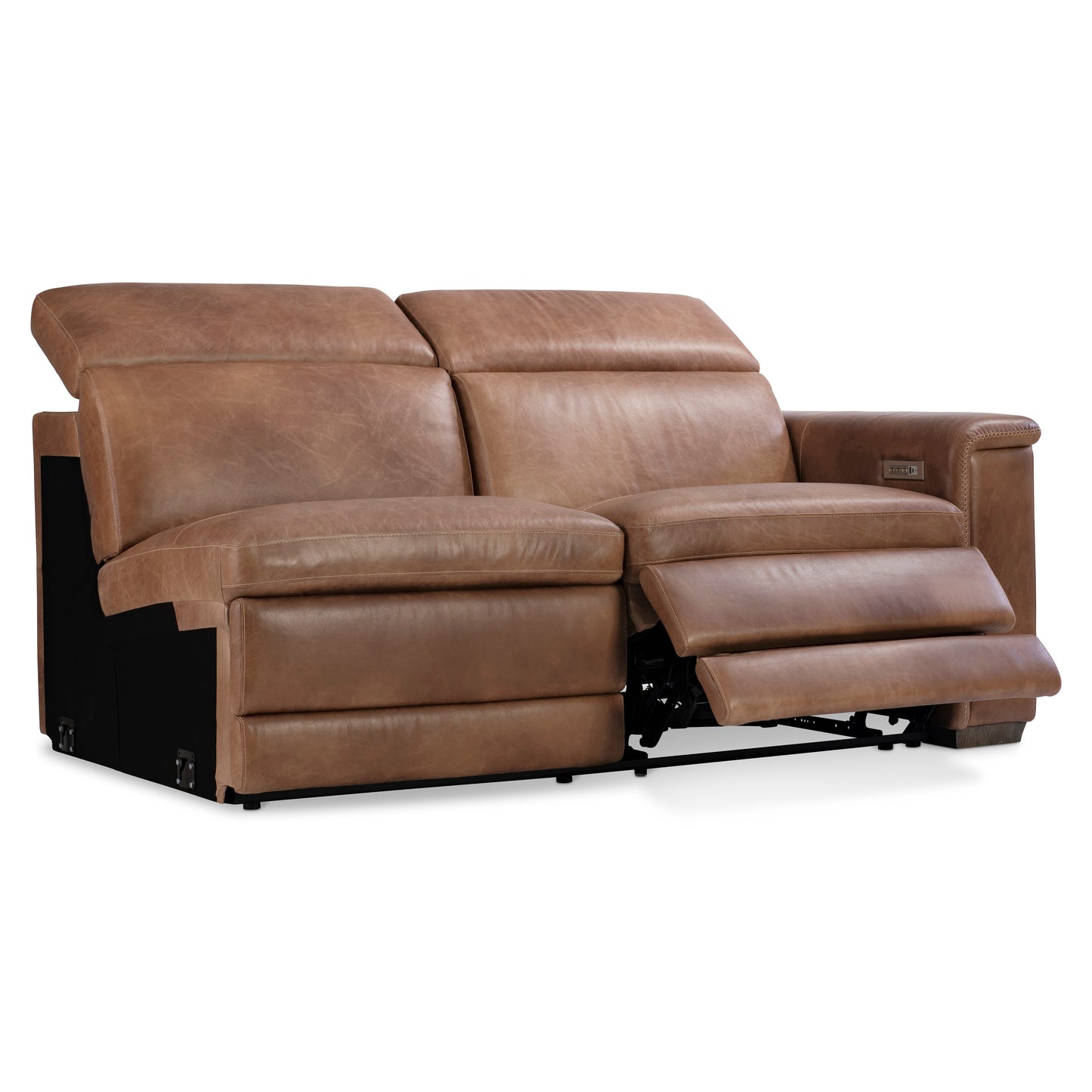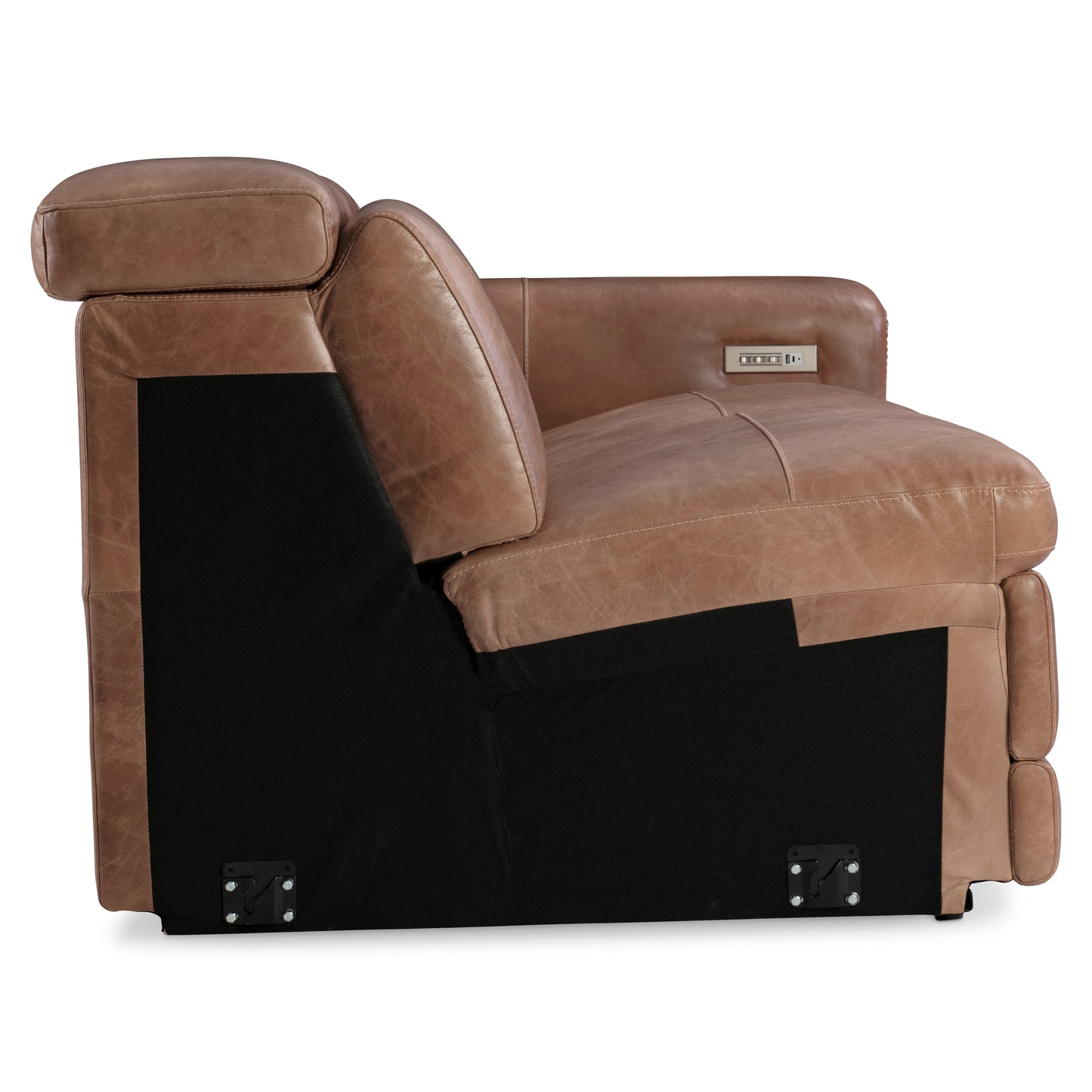 The ultimate in deep relaxation, the Lioni right arm loveseat features fine leather upholstery and power motion technology. A range of luxurious seating positions is at your fingertips. One seat fully reclines with a power headrest and footrest, while the other seat offers a pop-up headrest. A single USB port gives the option to recharge while reclining.