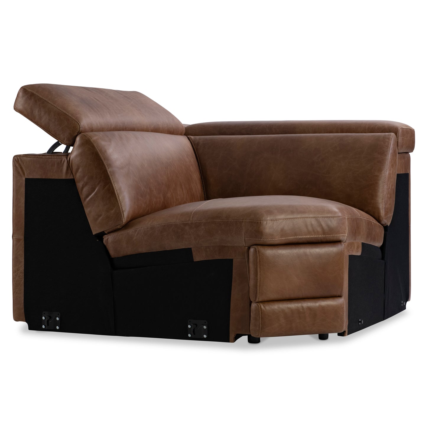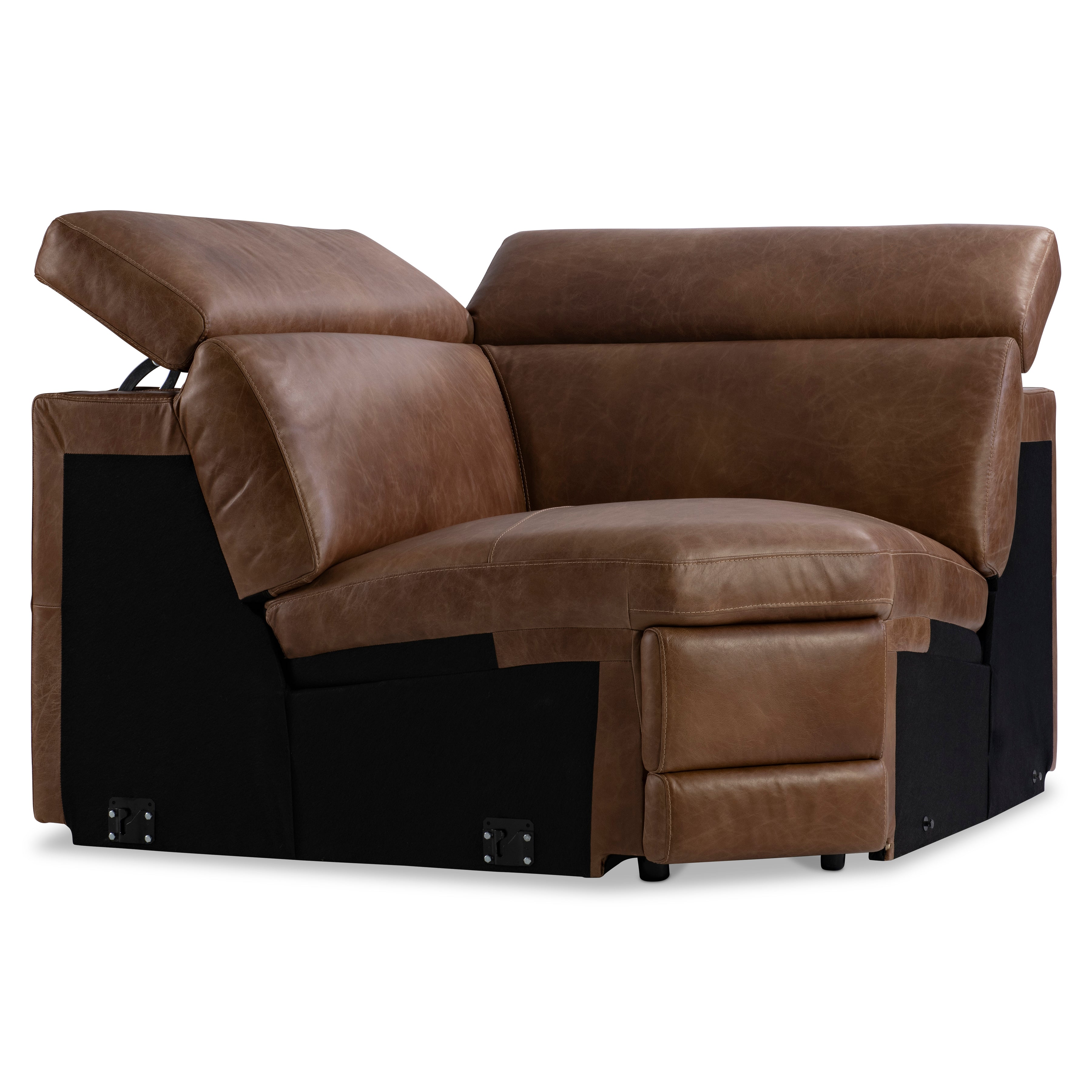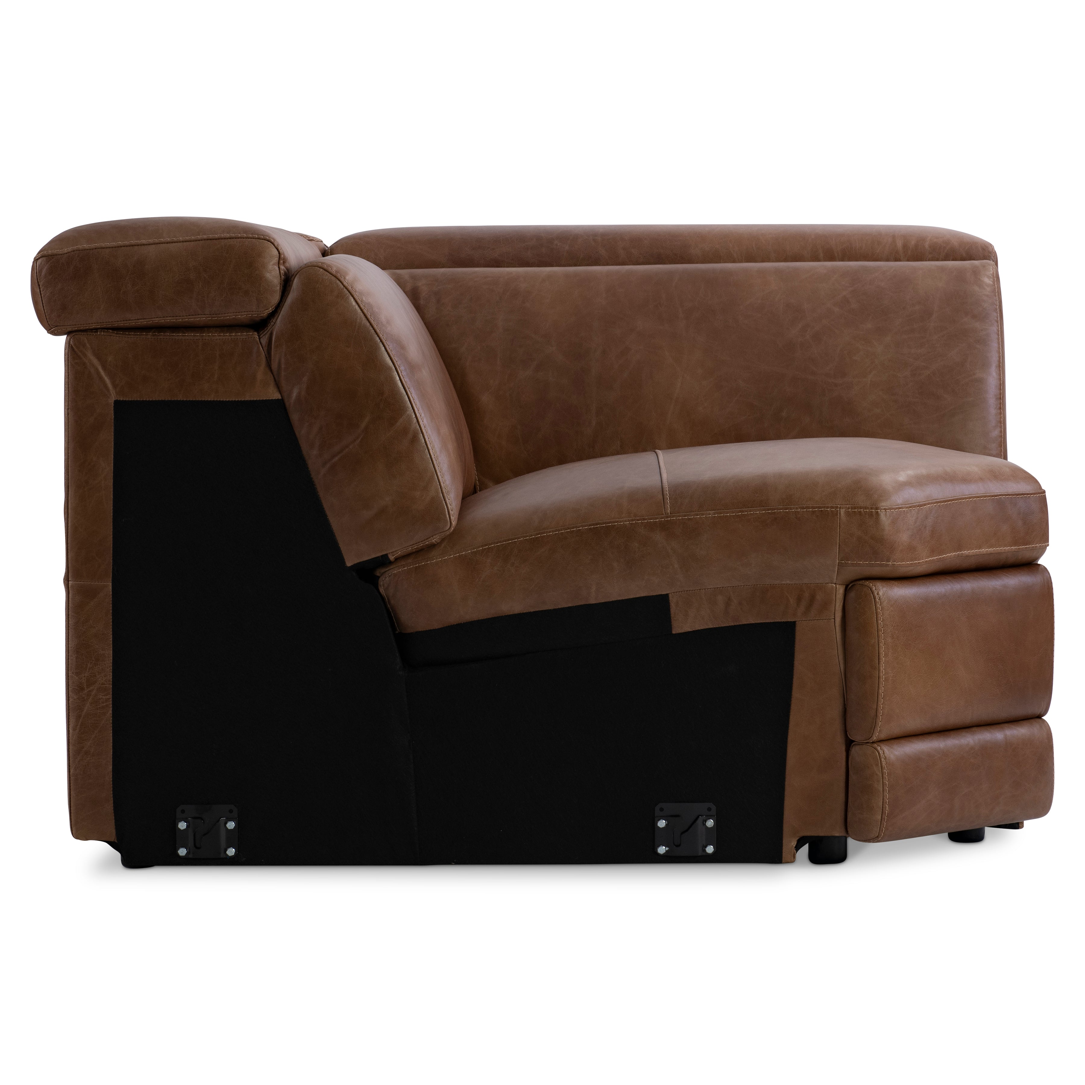 The ultimate in deep relaxation, the Lioni wedge features fine leather upholstery and a pop-up headrest. The perfect connection to create custom seating in a living space. This is part of the Lioni sectional.