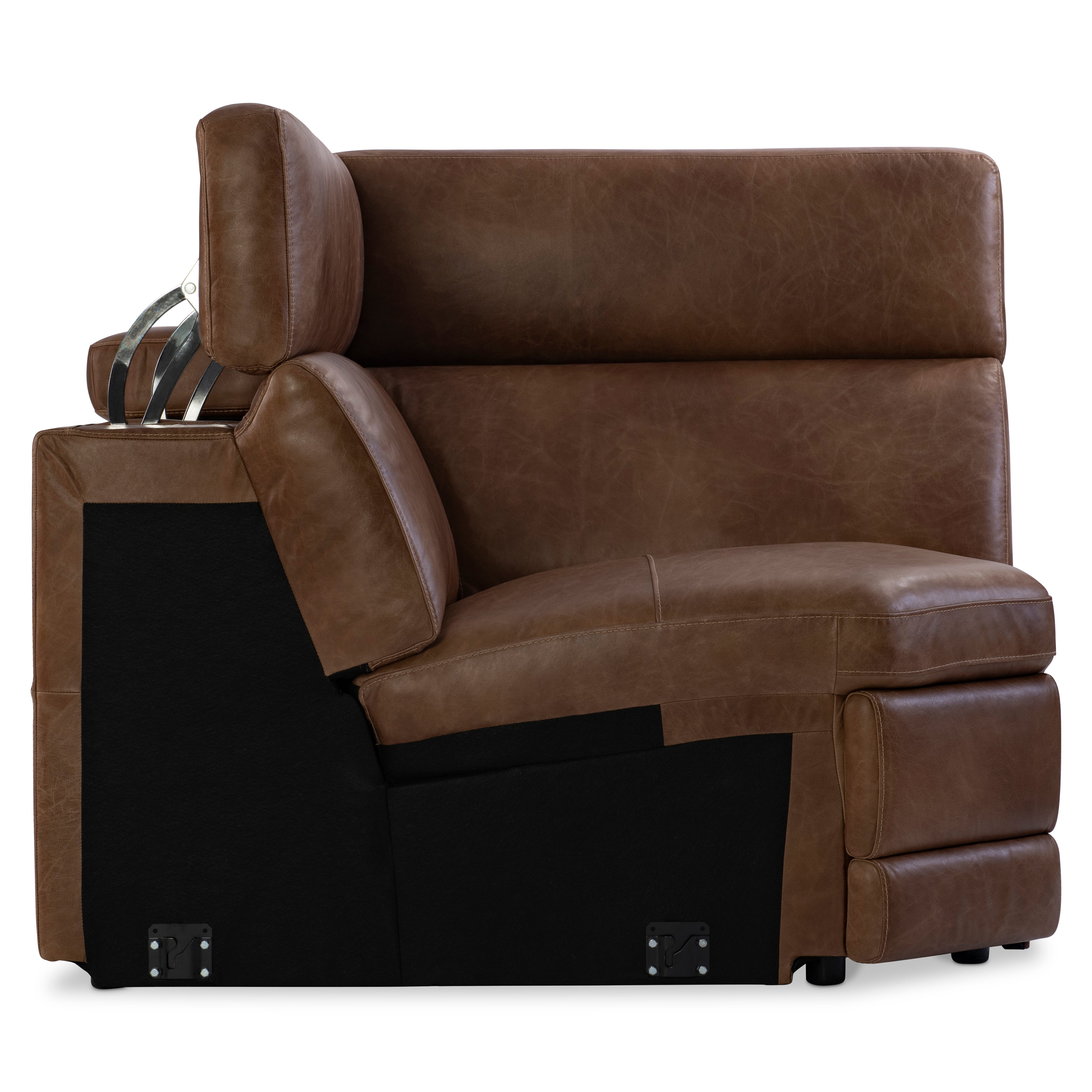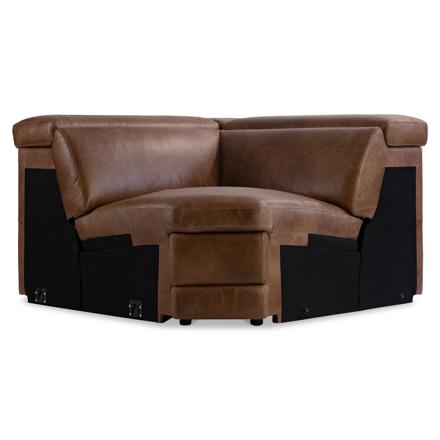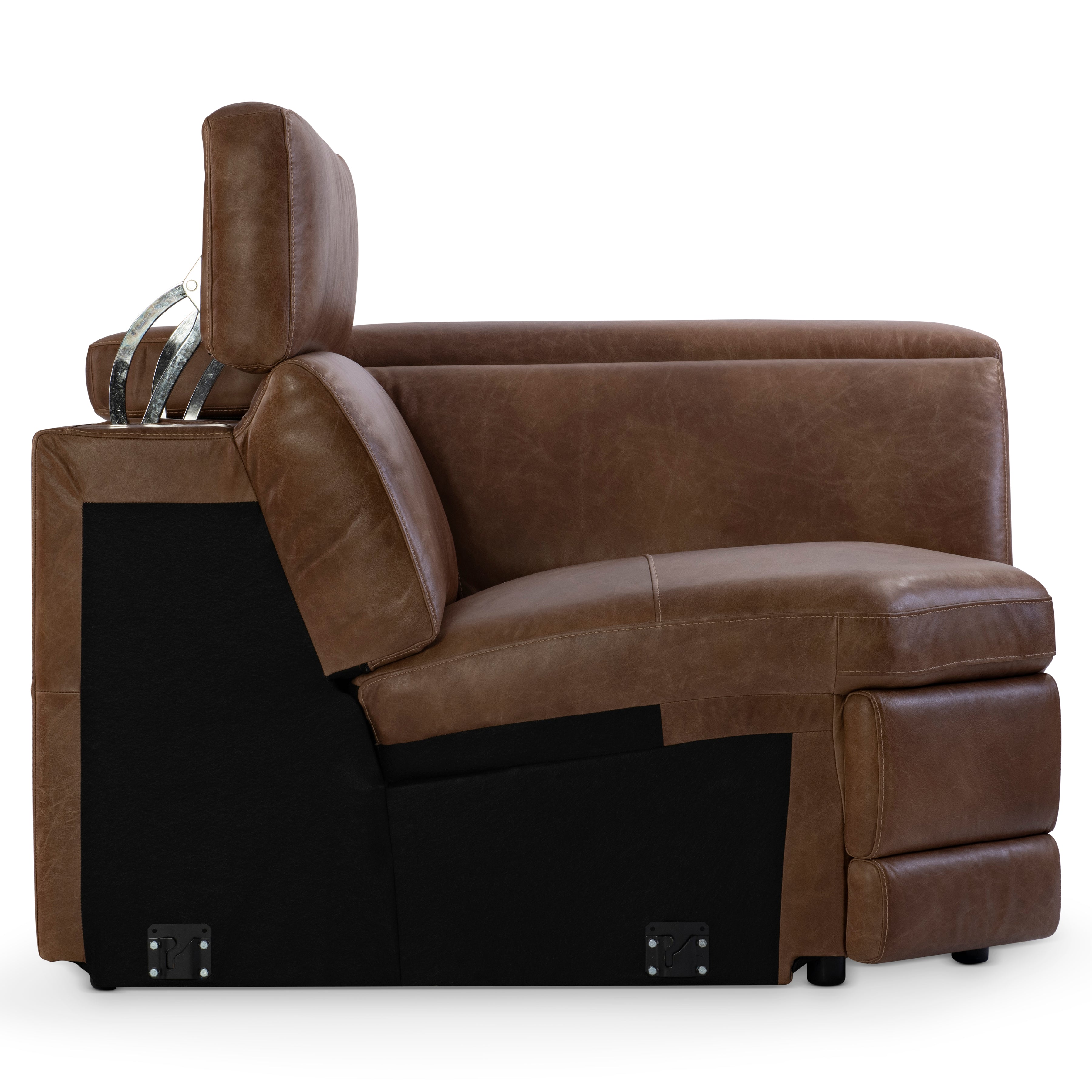 The ultimate in deep relaxation, the Lioni wedge features fine leather upholstery and a pop-up headrest. The perfect connection to create custom seating in a living space. This is part of the Lioni sectional.
