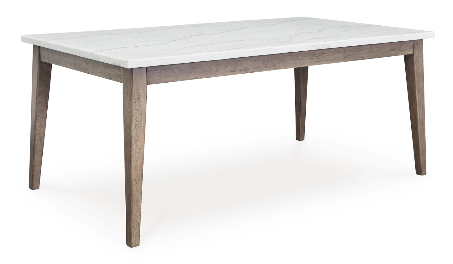 Easygoing appeal meets graceful refinement with this dining table. Its on-trend grayish brown finish and white marble tabletop are sure to add panache to your dining experience. Whether you're entertaining or enjoying your own nest, this table exudes elegance and sophistication.