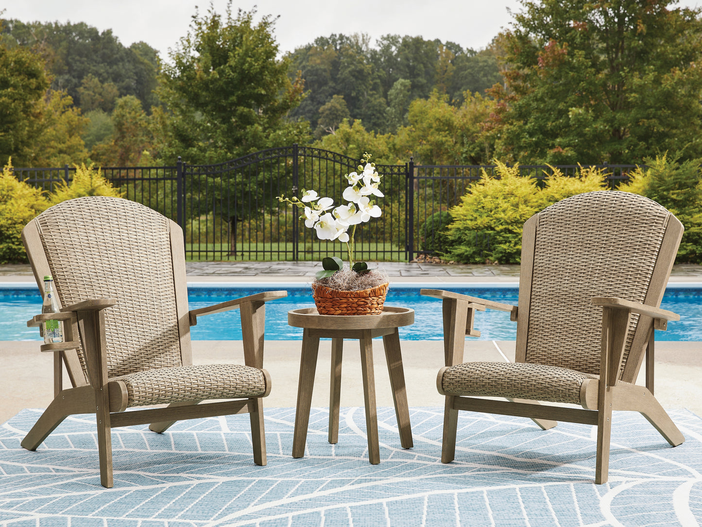 This outdoor package takes casual design to new heights. Crafted with durable eucalyptus wood and handwoven resin wicker, this set weathers the seasons beautifully with exceptional form and function. Plush cushioning enhances the seat and back with extra comfort.