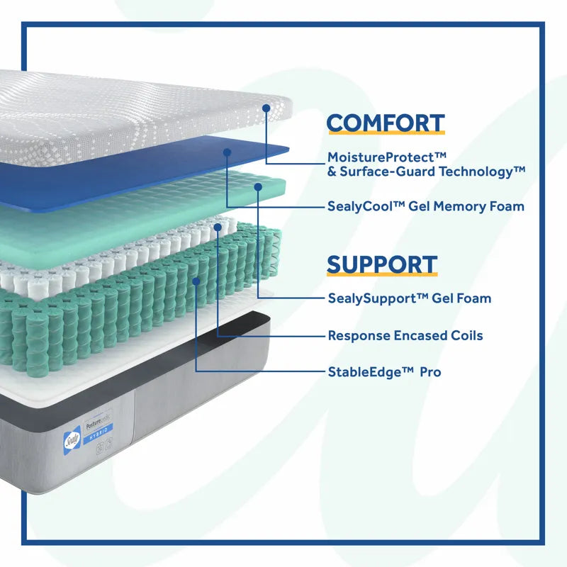 • HYBRID TECHNOLOGY-Densely-packed fabric-encased coils and SealySupport™ Gel Foam offer all-over support with reduced motion transfer from your partner