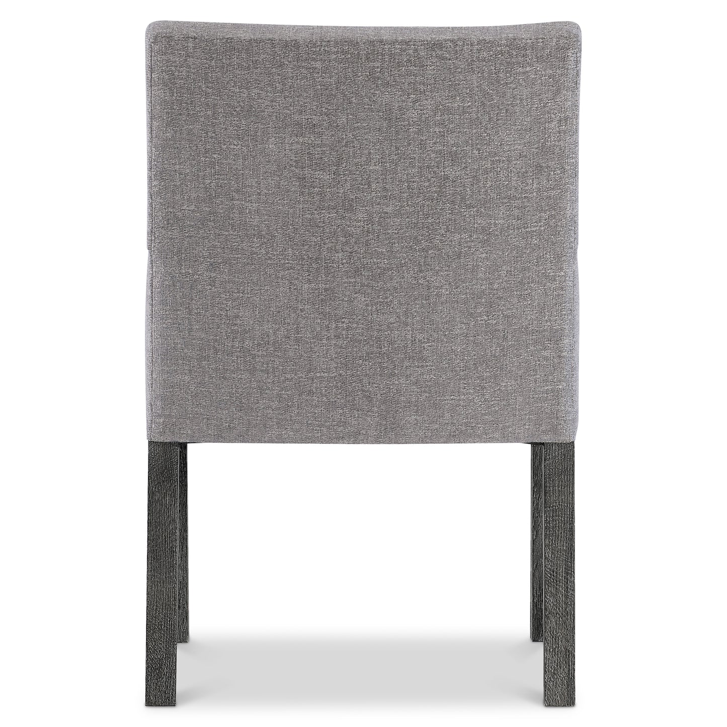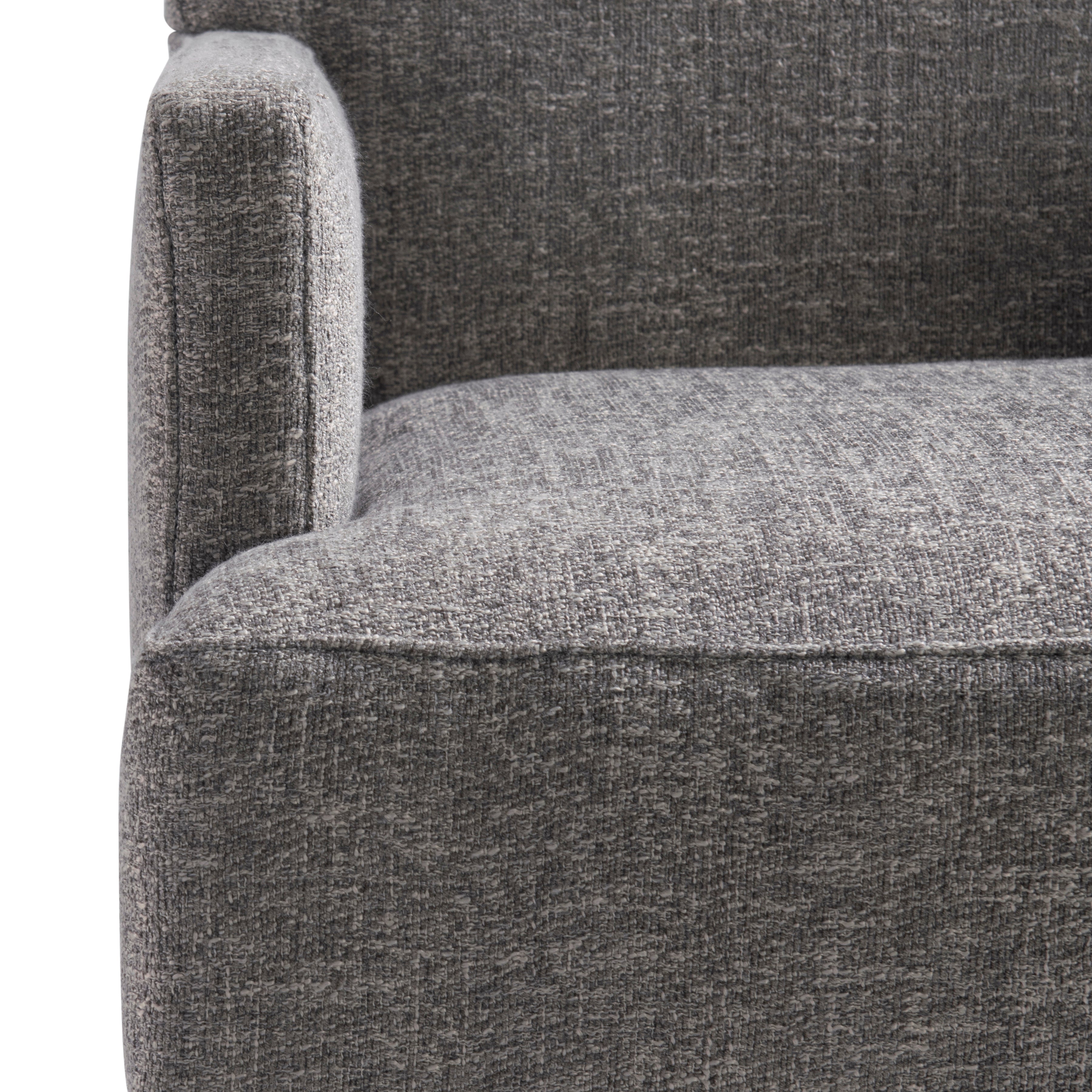 Simple and unadorned lines lend a modern edge to the casual style of the Menton arm chair. The design is softened with a gentle curve to the back and arms. Exposed wood legs feature the moody Sutton finish.