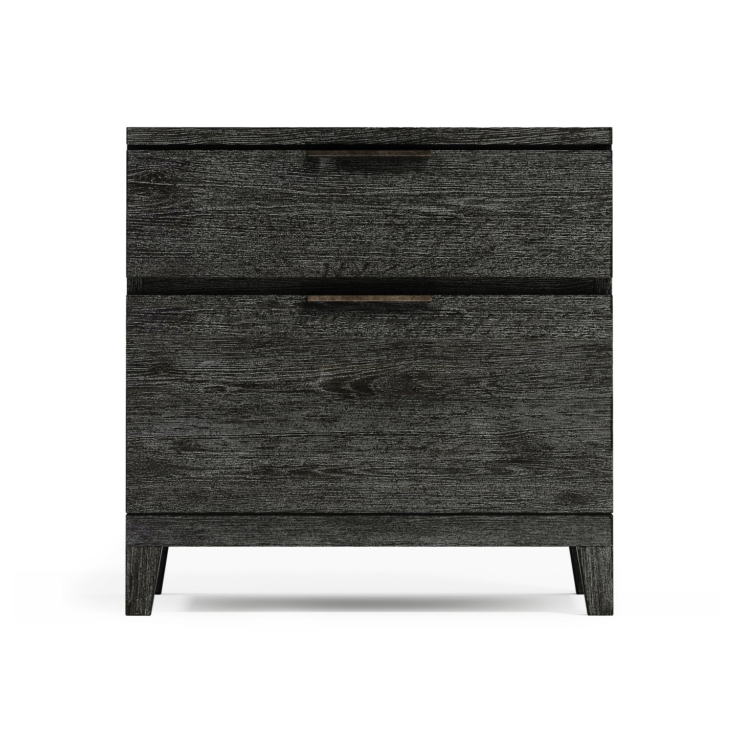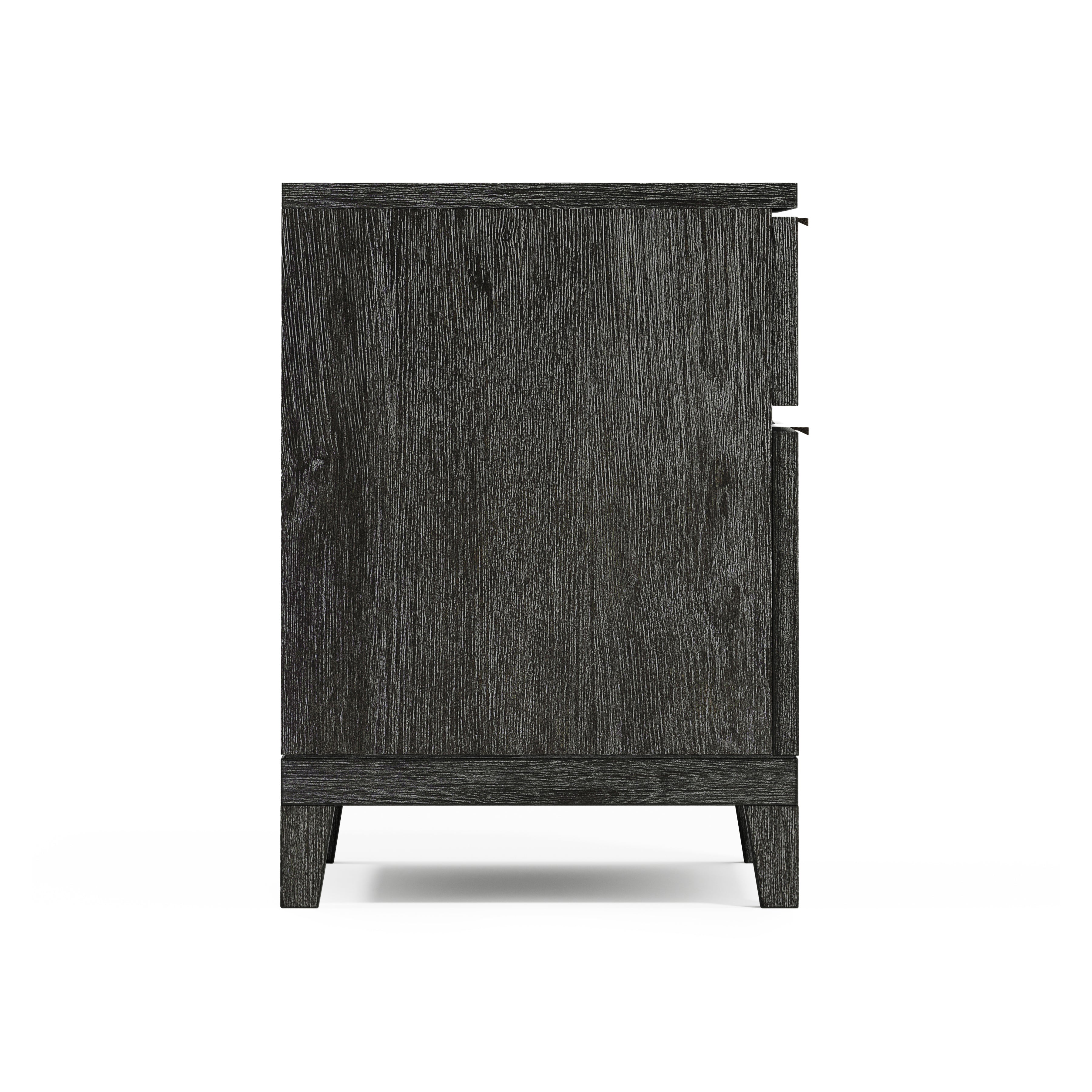 The Menton nightstand updates a traditional design with an earthy Sutton finish, highlighting the beautiful woodgrain. Two pull-to-open drawers have cast aluminum tab pulls, and the back offers a two-port A+C USB charging unit. The case rests on a base with four slightly curved legs for a casually sophisticated style.