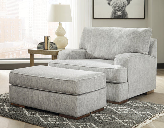 An indulgent choice with deep seats crafted for ultra-plush softness, this loveseat is the ideal merger of modern flair and classic staying power. If you love a touch of texture, you’re sure to appreciate this loveseat’s gorgeous gray upholstery with subtle chevron effect. Posh toss pillows layered over the loose back cushions perfect the richly relaxed aesthetic.