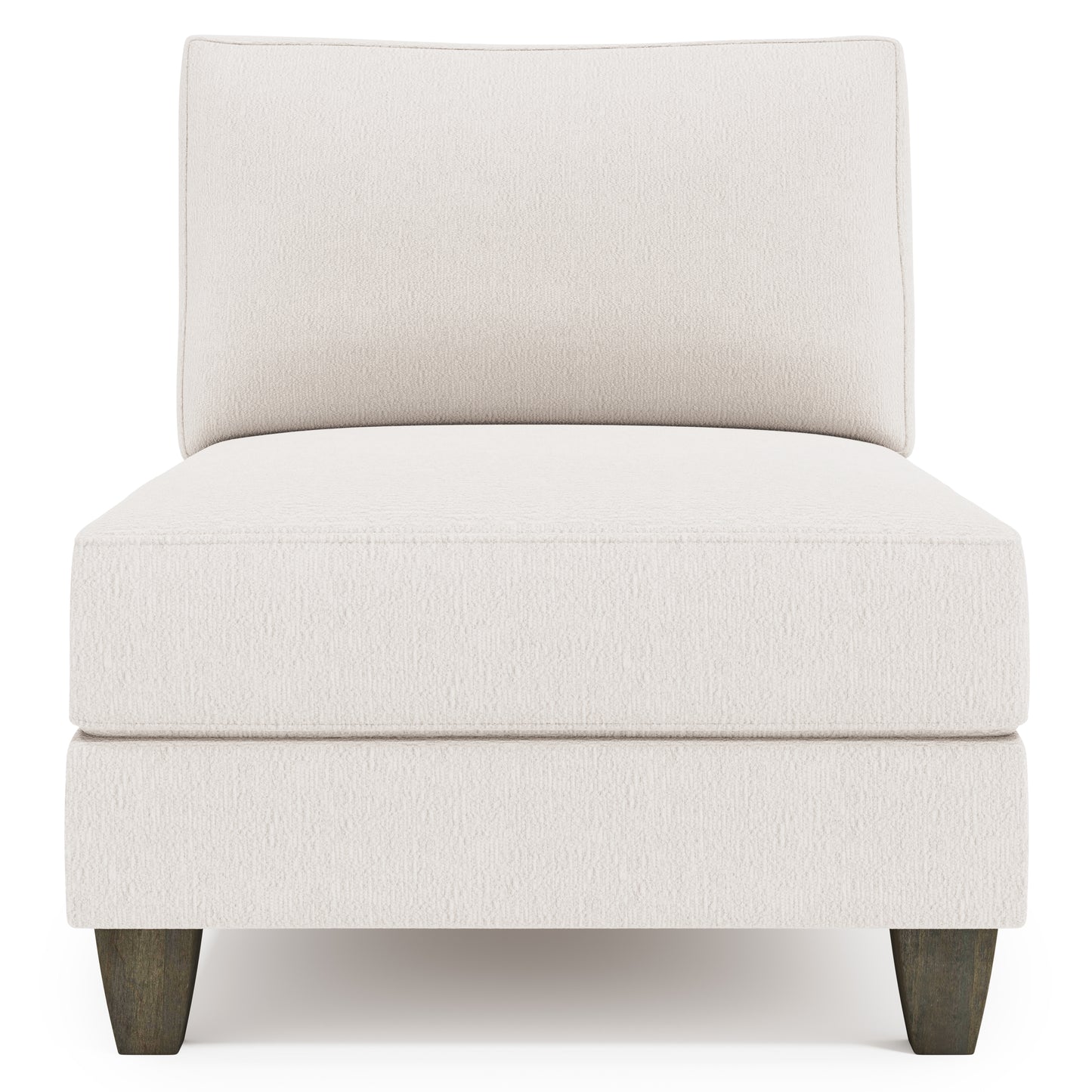 Stylish and modern with deep, comfortable seating, the Mila armless chair achieves unprecedented comfort and timeless style. Natural fabric combines with relaxed tailoring to deliver a look that is both casual and sophisticated. Sleek tapered legs contribute to the contemporary appeal of this plush chair.