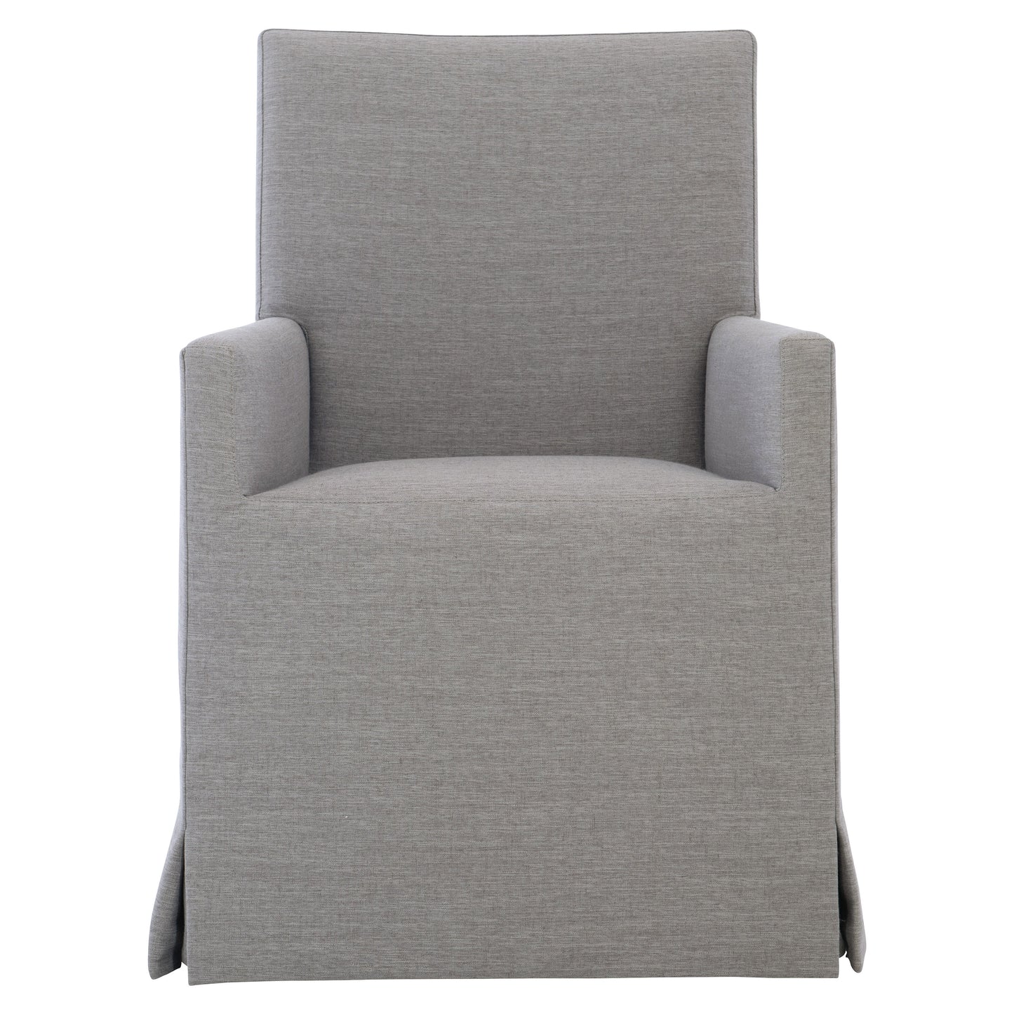 Inspired by 17th century French Provincial furnishings, Mirabelle balances traditional forms with casual style. The Mirabelle arm chair showcases an elegant shape smoothly upholstered with a stitched slipcover look. Clean lines and narrow track arms contribute to a clean, contemporary aesthetic that merges seamlessly with classic European influences.