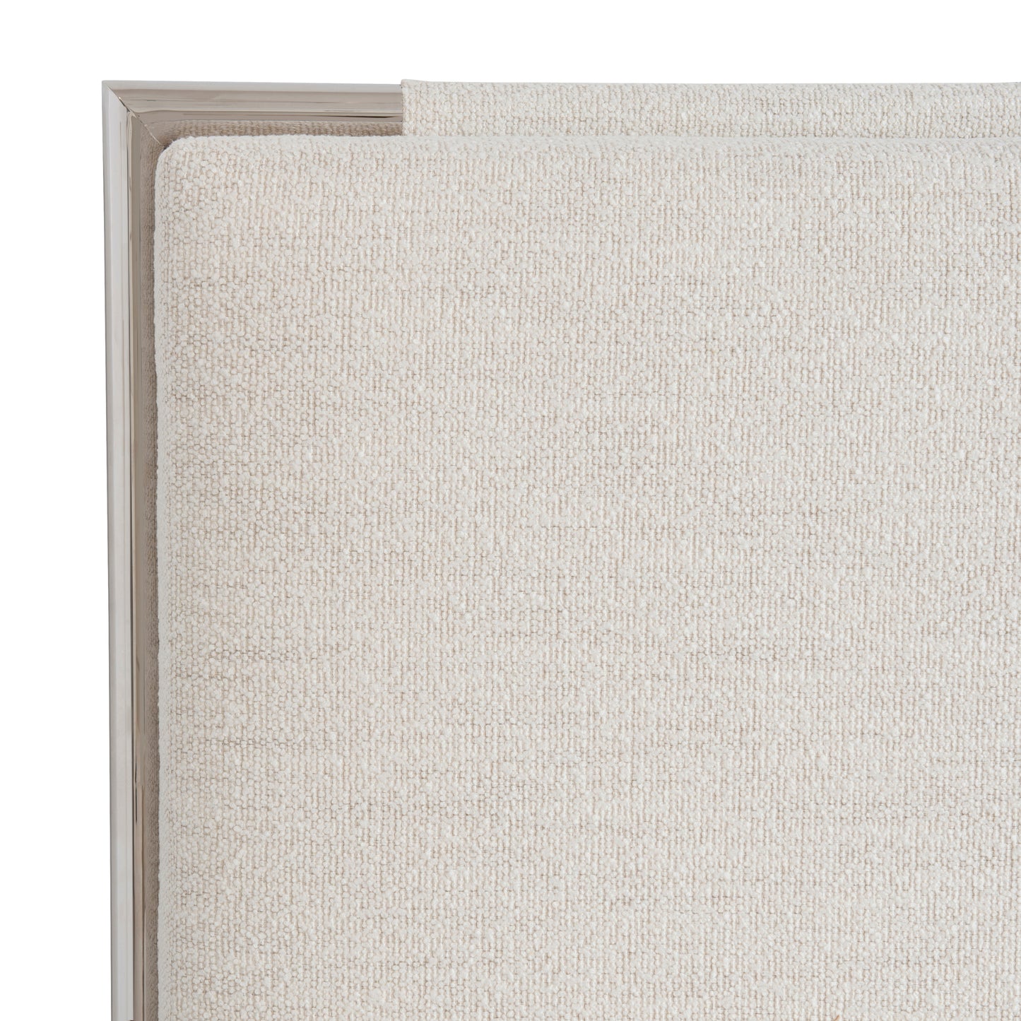 In the Modulum collection, clean lines and a flawless balance of materials combine with relaxed sophistication for a look that's bright, fresh, and effortless. There are midcentury references in this stunning bed, but with a modern update. A metal framed headboard and footboard are complemented with upholstered panels for a perfect textural balance. The soaring height of the headboard is allowed to draw all eyes as the footboard takes a low profile.