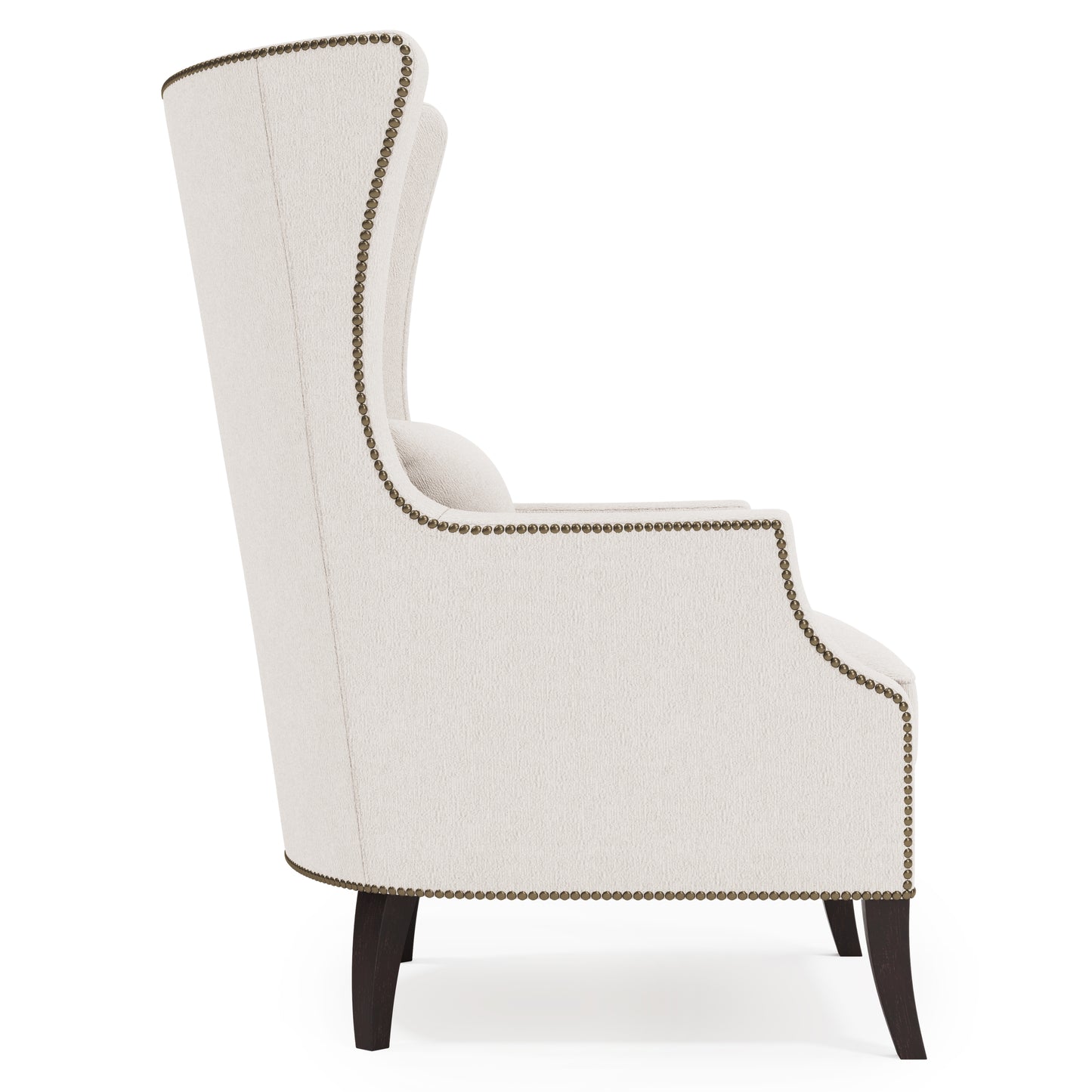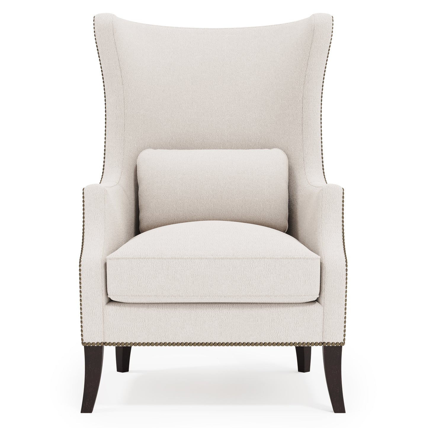 The Mona chair strikes a perfect balance between traditional elegance and a clean, modern aesthetic. Based on the classic wingback, the design features graceful curves, flared wings and slender sloped arms. Nailhead trim distinguishes the elegant contours of the chair, while tapered legs add a contemporary touch. From a variety of fine fabrics and sophisticated finishes, this piece may be customized to suit any room.