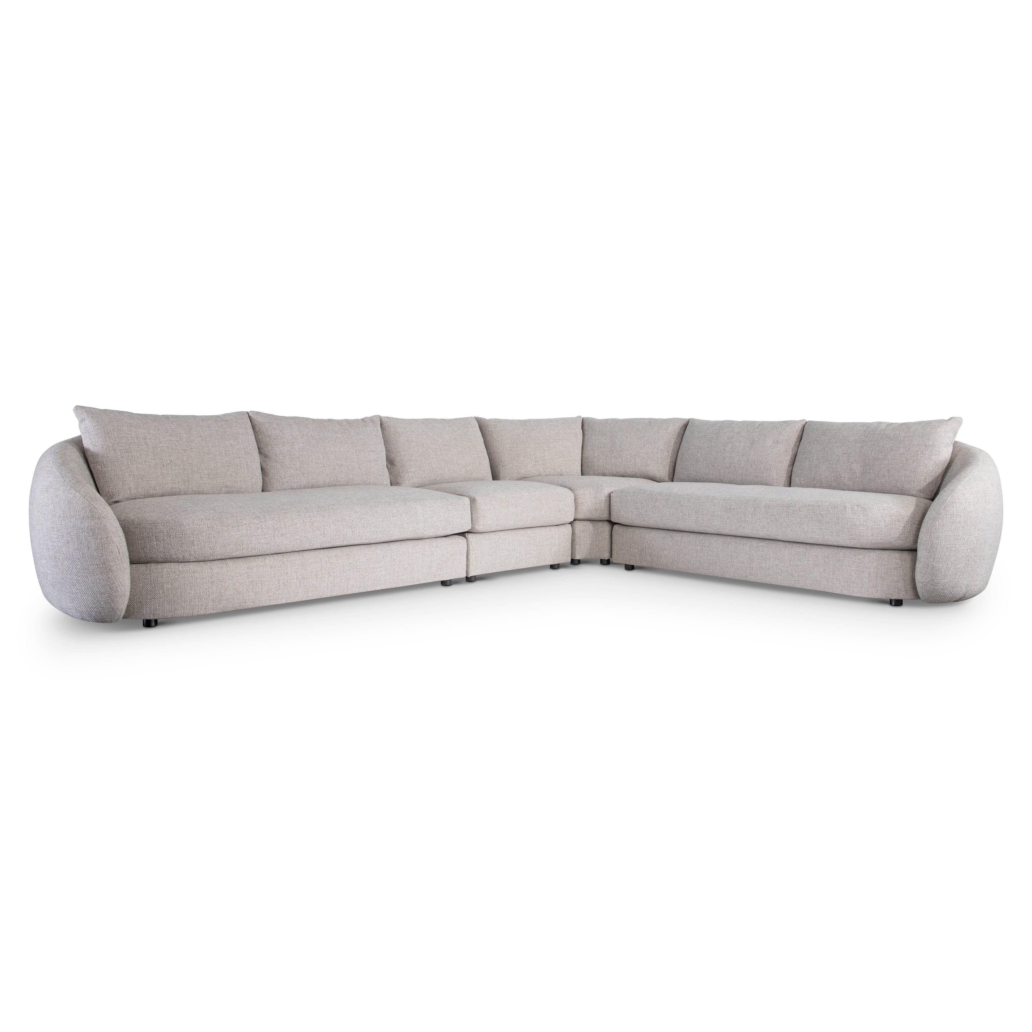 Inspired by a sheltering form, the back of the Moretti sectional is boldly shaped to curve around the seat with sweeping arms. The design embraces deep seats with lush cushions. Configurations can include loveseats, armless chairs and a wedge.