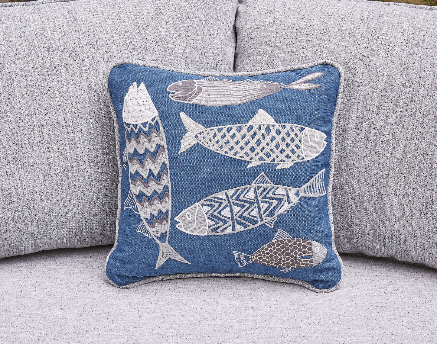 This set of 2 outdoor right- and left-arm facing loveseats with cushions is made with easy-clean polyester Nuvella+™ upholstery. Pairs with other items in the series to make a sectional.