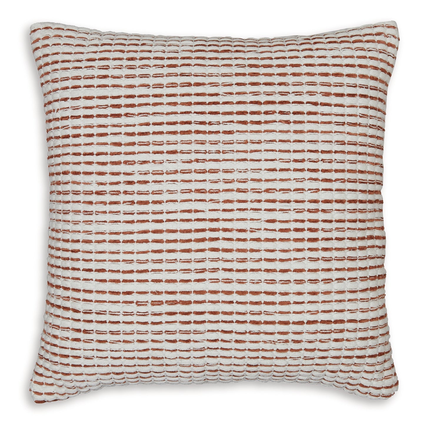 This throw pillow’s woven stripe design lends a cozy, laid-back look. Its rust and white hues mingle well with neutrals and earth tones, adding an inviting air to your decor. Toss it on a bed or your go-to chair for a relaxed feel.