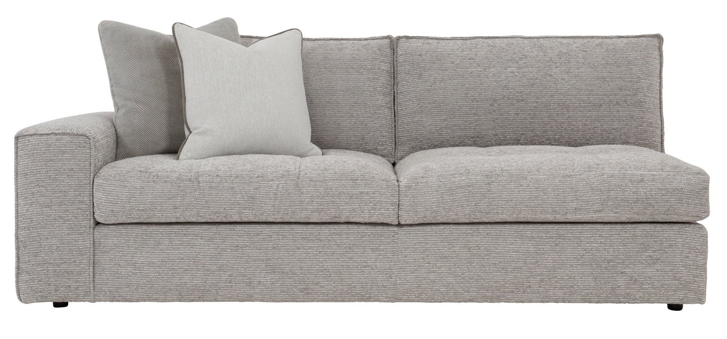Casual comfort meets cool modern style in the Nest left arm loveseat. Deep, luxurious seating and sumptuous down cushions beckon. Clean lines and a generously wide track arm create a distinctly modern silhouette. Stitched flanged edges add a subtle nuance to this stylish but understated loveseat.