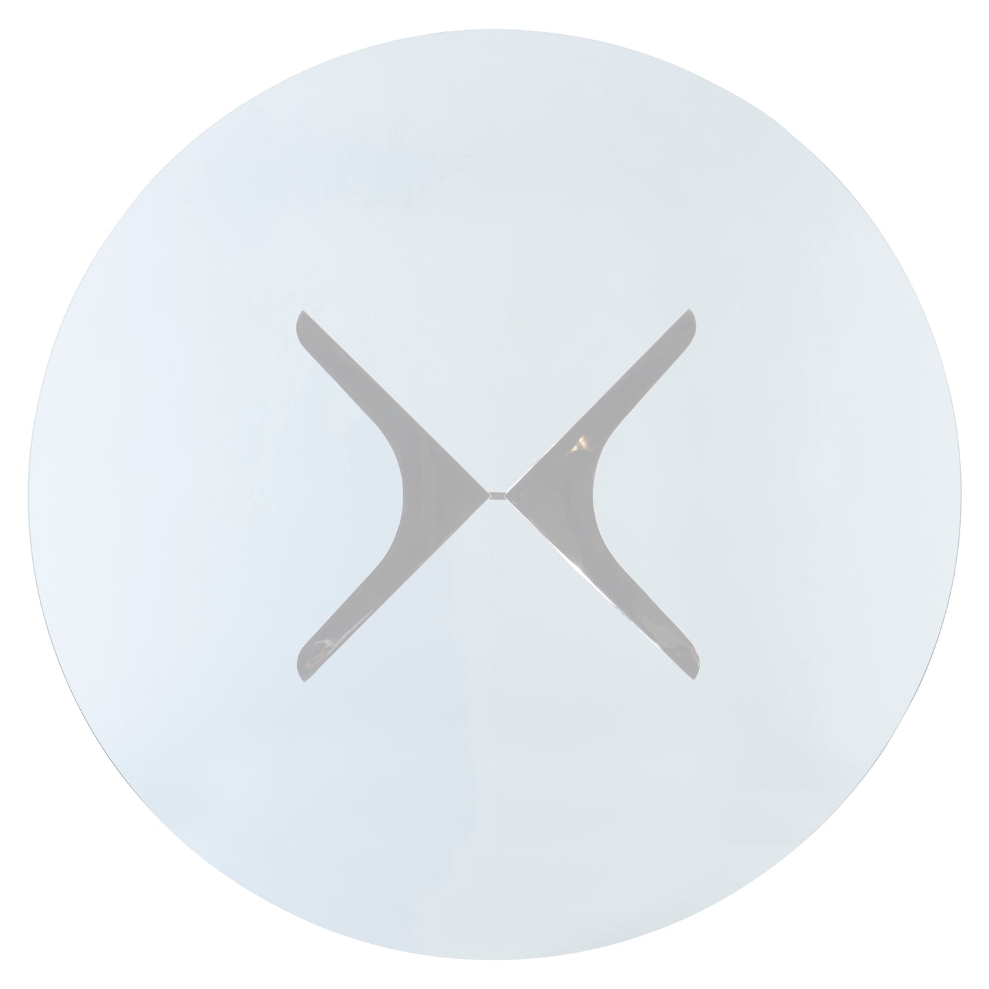The Nova dining table is an elegant interpretation of industrial design. A round glass top is supported by two angular stainless steel sections that are connected in the center. It's a perfectly polished style for modern living.