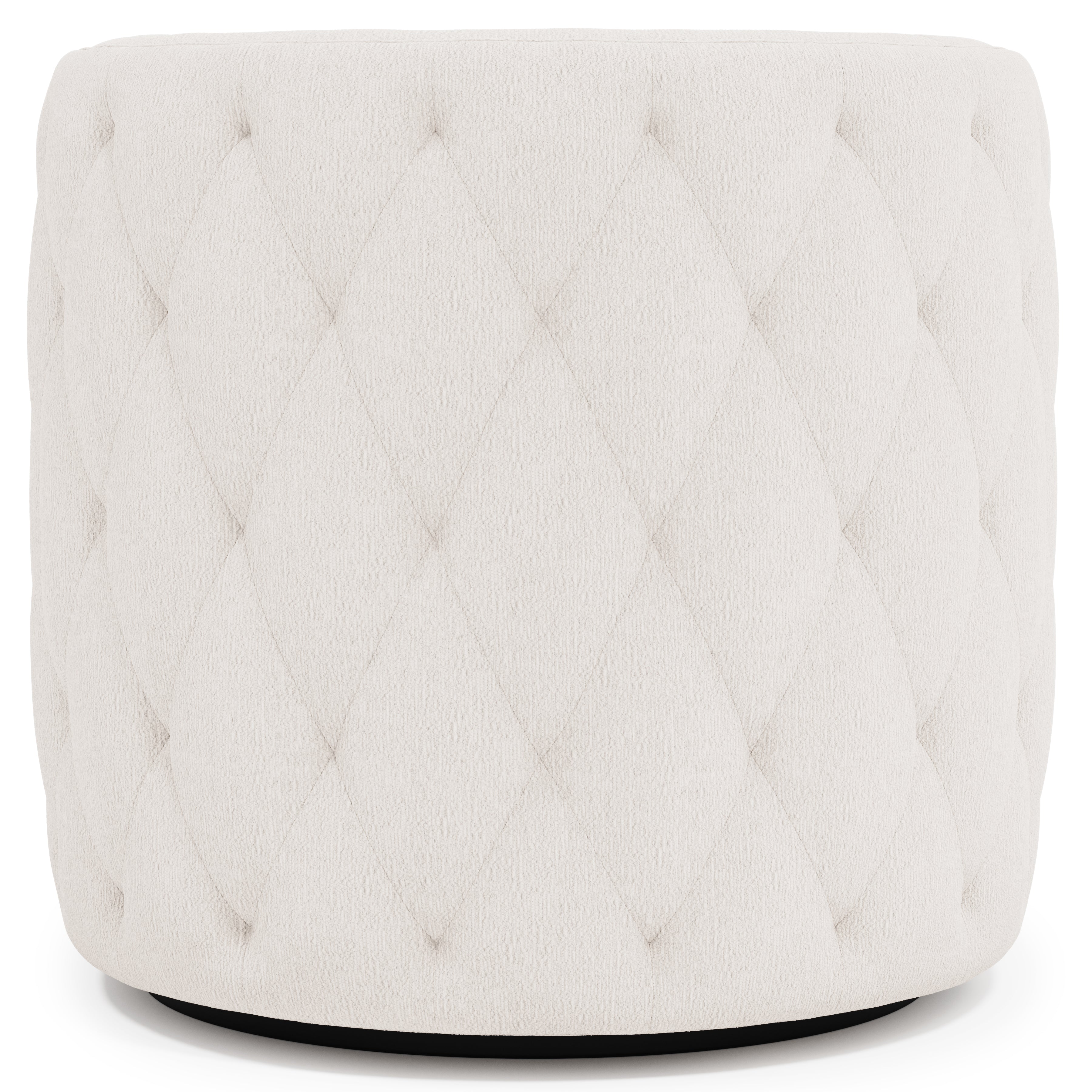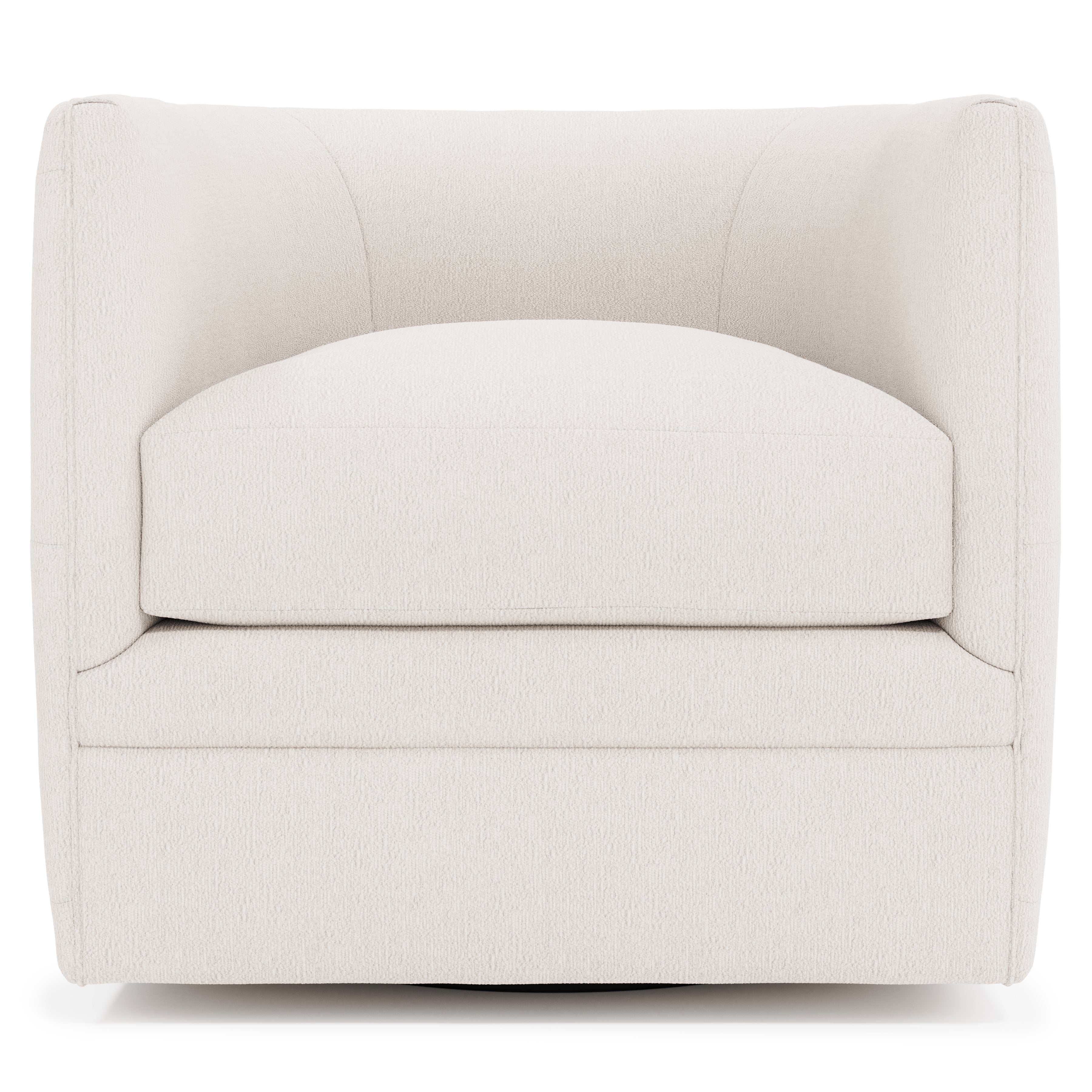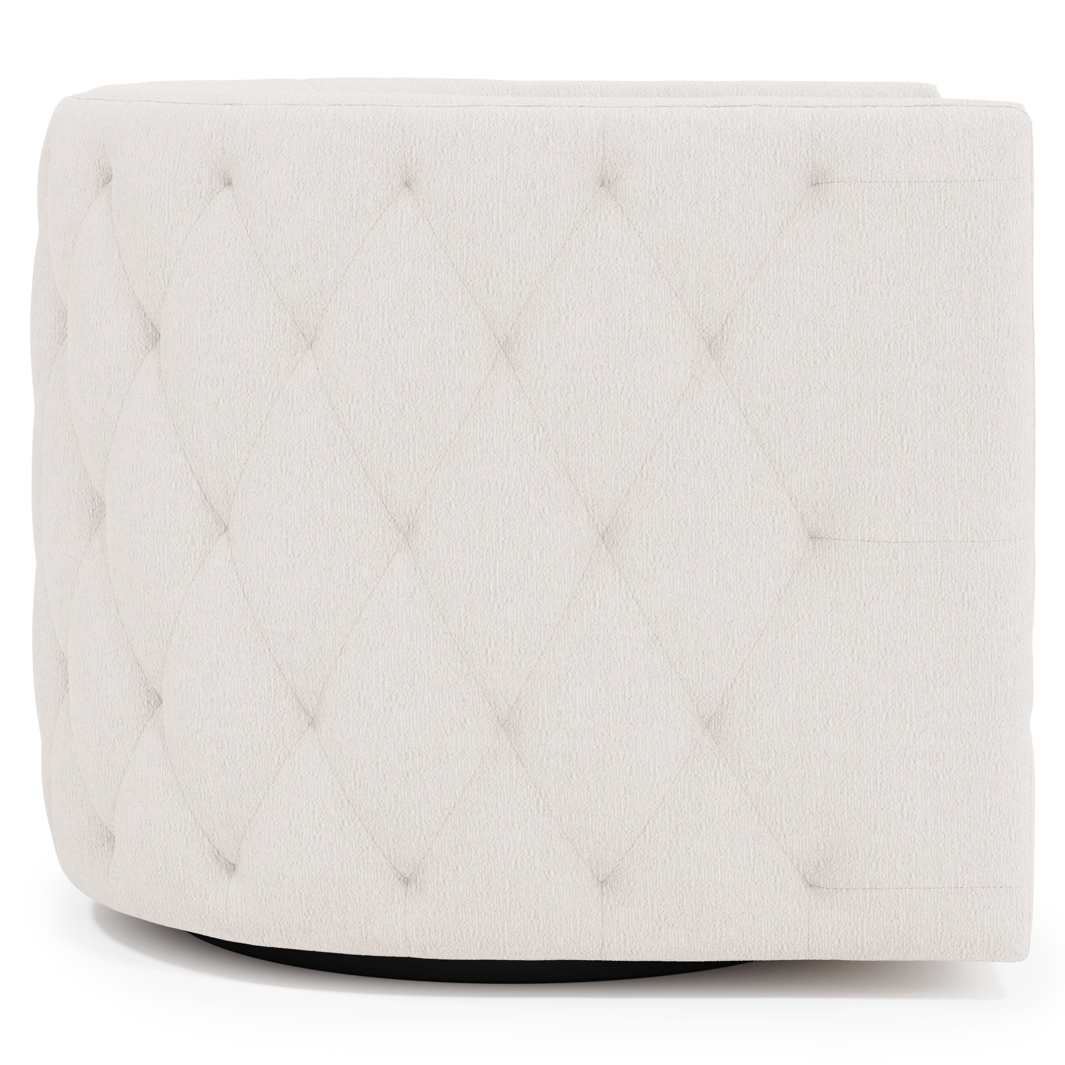 Featuring a barrel back and track arms, the Palazzo swivel chair puts a modern spin on a traditional form, delivering an eclectic feel. Buttonless tufting and welt trim create a sophisticated look. The curved shape provides luxurious support and softens the flow of a room.