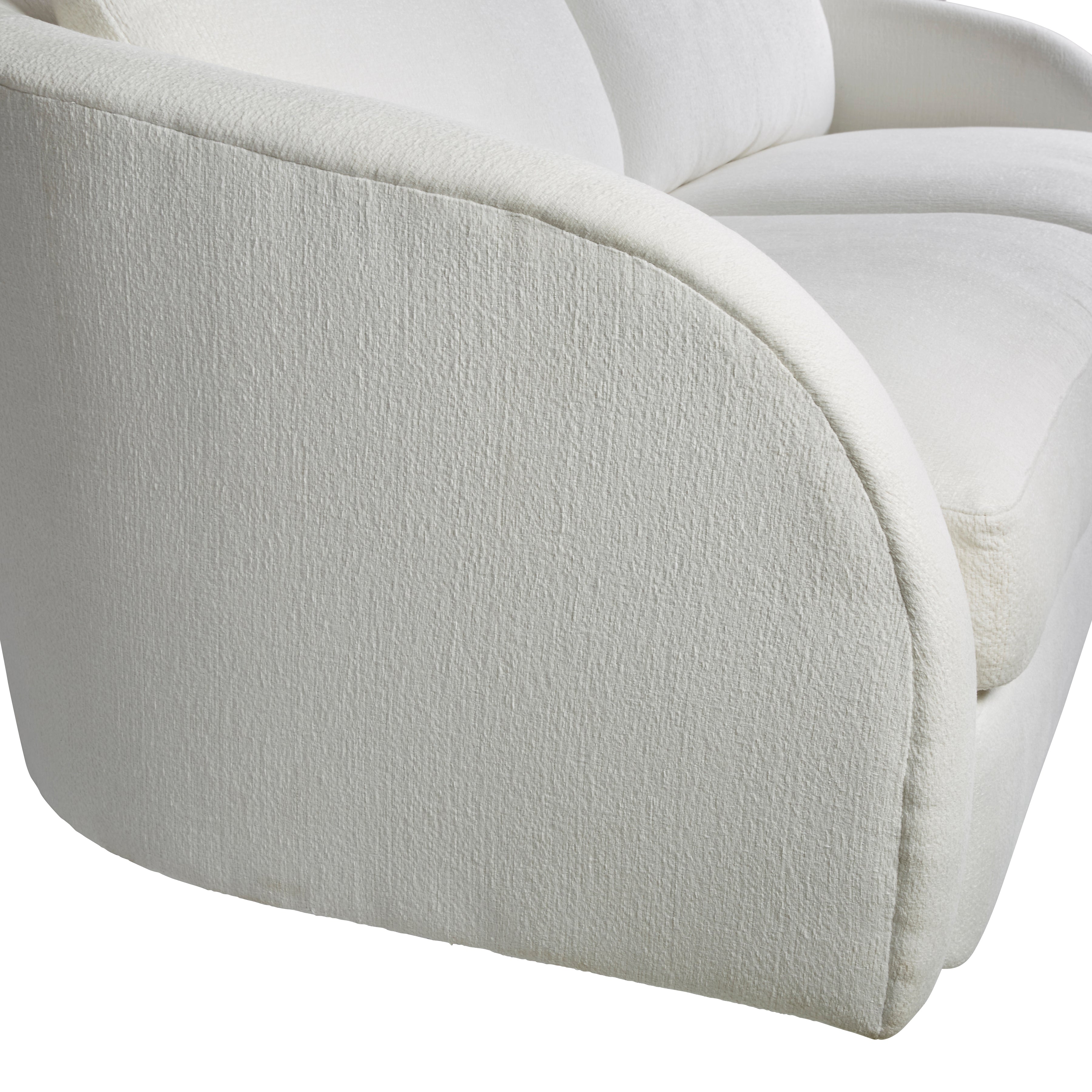 The back of the Palermo outdoor sofa curves softly to the base, offering a restrained elegance. The cushions and back create a lush seat, formed with performance fabrics and weather-resistant foam. The sleek design would be equally at home indoors, but is crafted for outdoor settings.