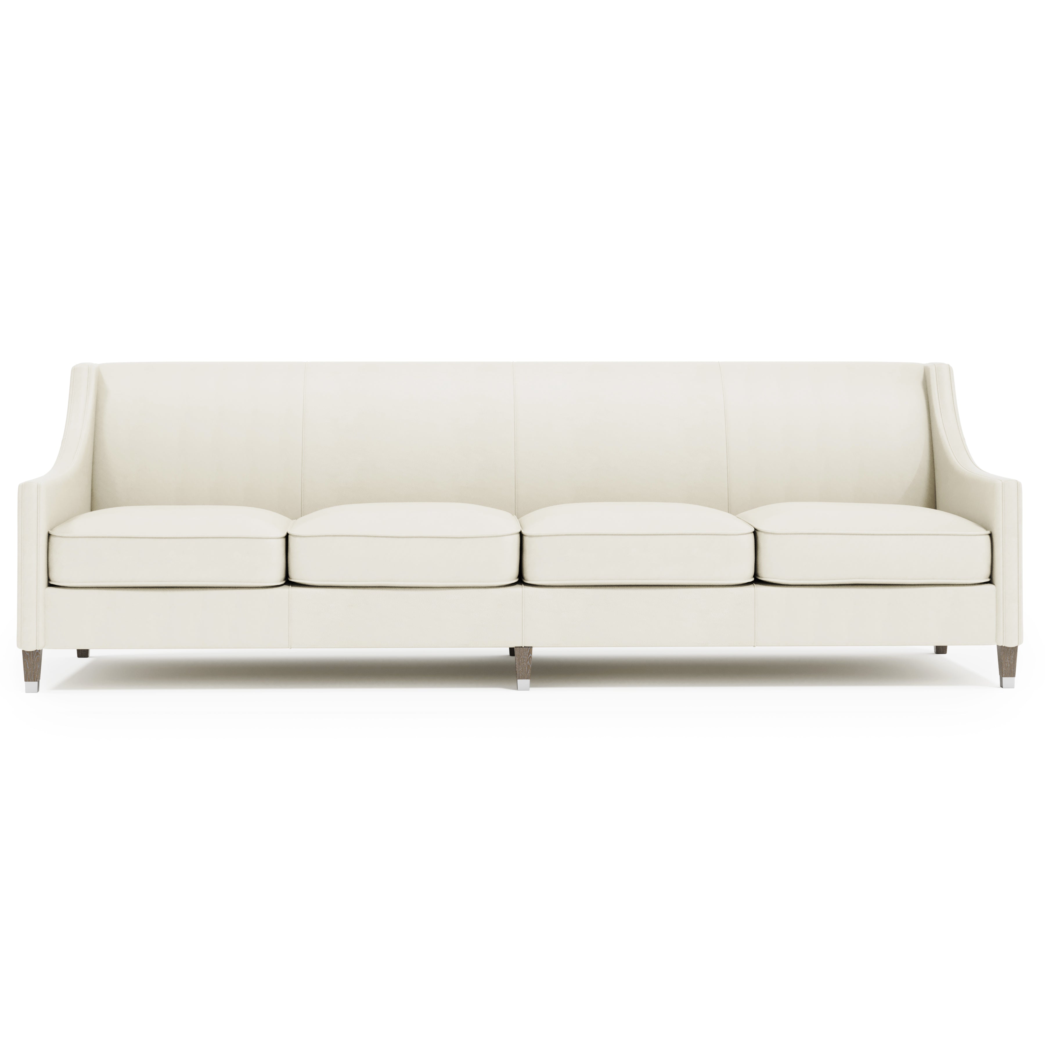 The Palisades leather sofa exhibits fine craftsmanship and a distinctly modern styling. Elegant sloped arms and sleek tapered legs add to the sophisticated appeal of this piece, while welt trim and welting accentuate the graceful curves and clean lines. Tapered legs capped in metal ferrules provide a chic final touch. This sofa delivers a luxurious, modern aesthetic.