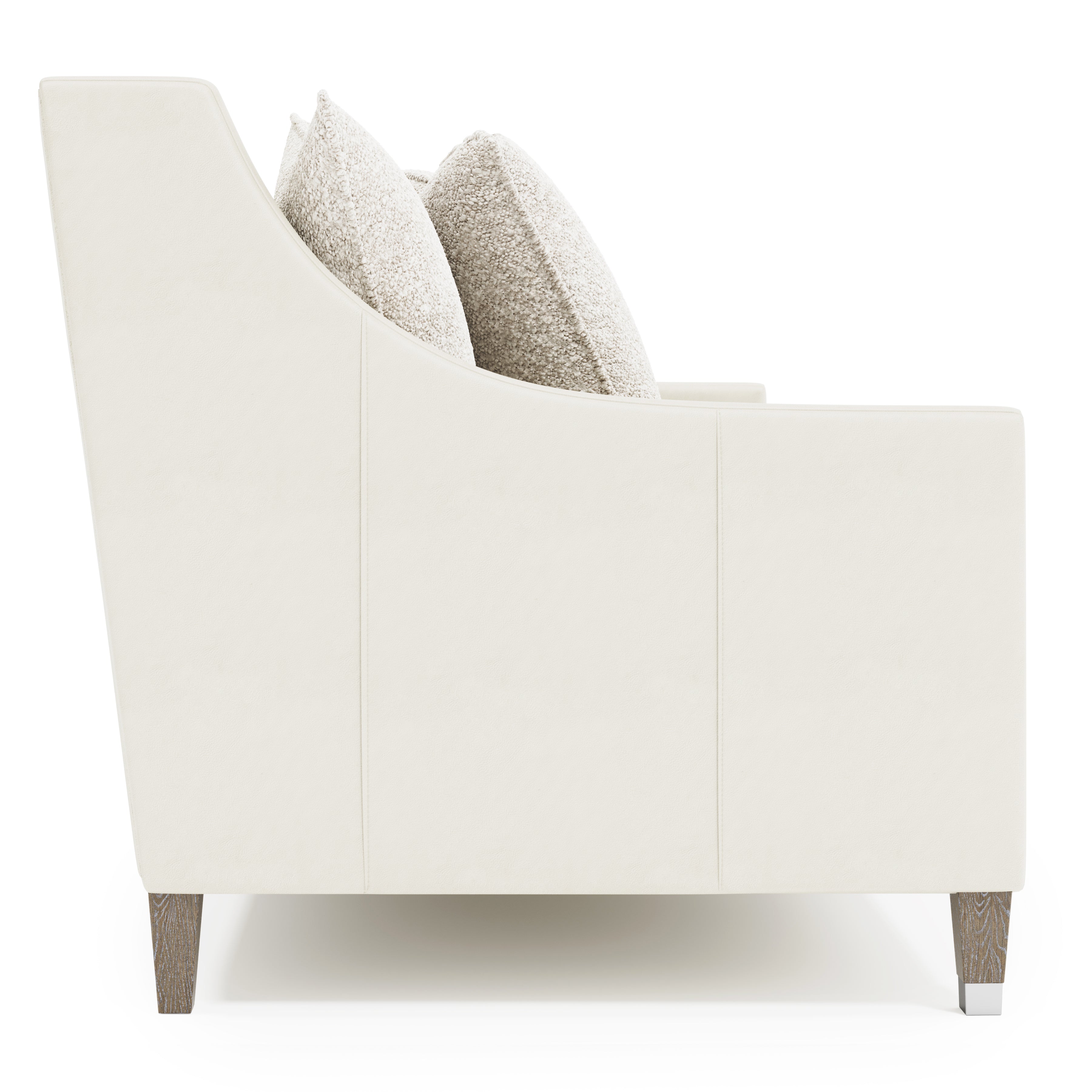 The Palisades leather sofa exhibits fine craftsmanship and a distinctly modern styling. Elegant sloped arms and sleek tapered legs add to the sophisticated appeal of this piece, while welt trim and welting accentuate the graceful curves and clean lines. Tapered legs capped in metal ferrules provide a chic final touch. This sofa delivers a luxurious, modern aesthetic.