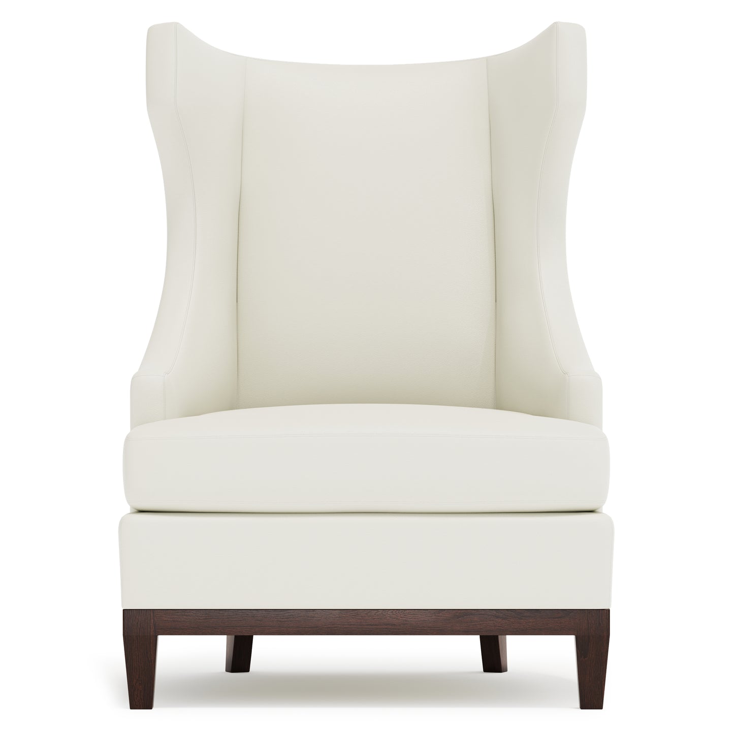 Updating a classic design with contemporary touches, the Pascal leather wing chair offers a cozy, traditional vibe perfect for today. Elegant in its simplicity, it features graceful lines and a streamlined look. An exposed wood base with sleek tapered legs gives it a definite modern bent. A plush down cushion offers luxurious comfort.