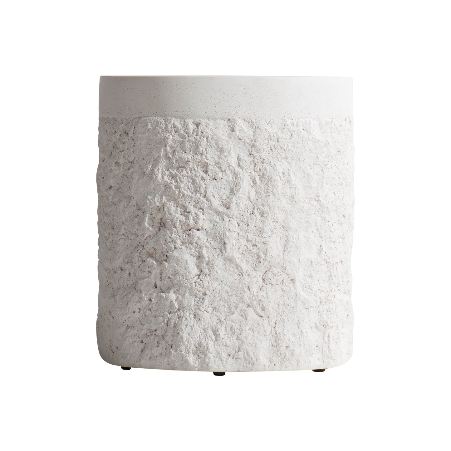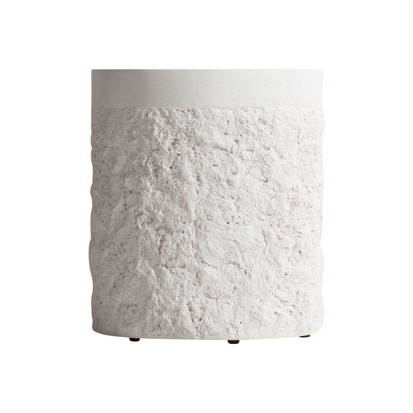 With the look of seafoam against the sand, the Pismo outdoor accent table offers a rough texture along the sides, with a smooth band at the top and for the table surface. Crafted of natural stonecast, this table combines organic style and sleek modernity.
