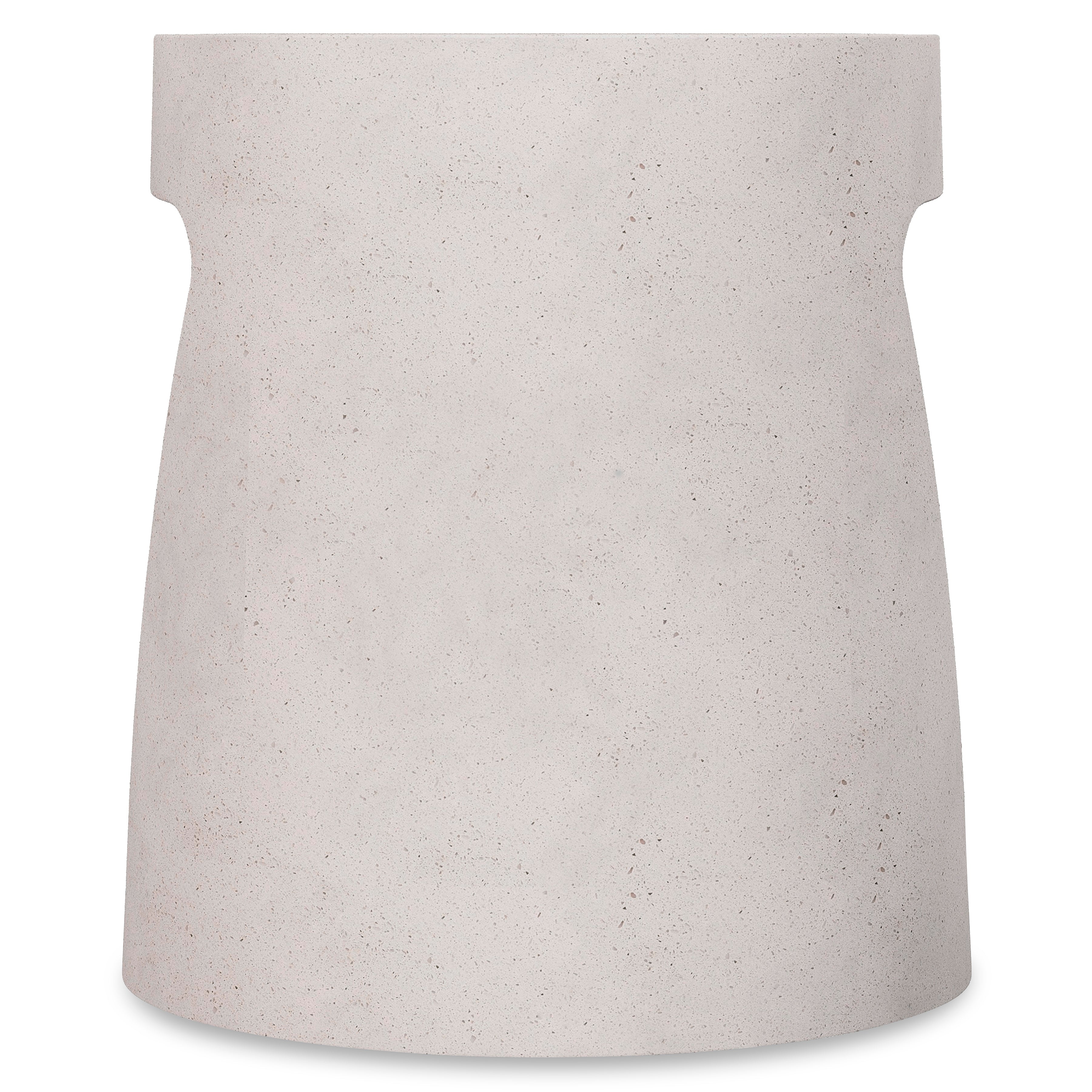 A bold structure is constructed of wood and concrete for the modern Prado desk. Angled and semi-circular legs make a sleek statement in cast glass-reinforced concrete in Buff finish. They support a center wood top in the Tawny finish with a center drawer. A power receptacle with two outlets and two USB ports is available out of sight, underneath the desk.