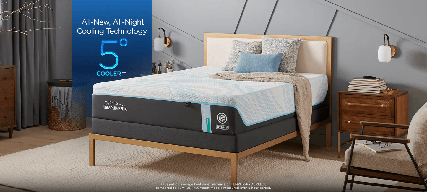 The exclusive cooling materials of TEMPUR-Breeze® create an all-night cooling experiencethat lasts from the minute you lay down to the moment you wake up.
