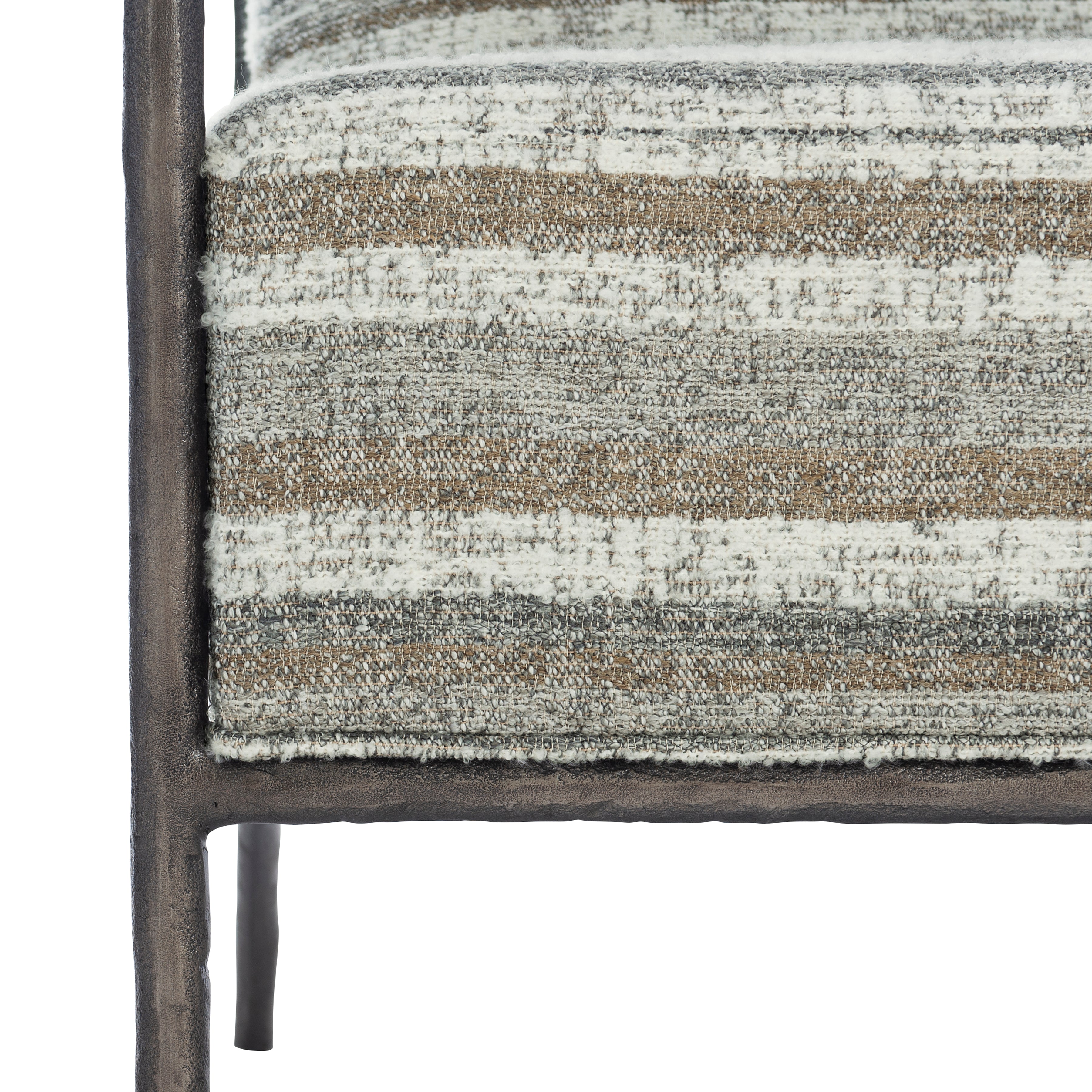 With a clean form and graceful lines, the Renton chair blends the old and the new. The rustic craftsmanship of the cast iron faux bois frame adds a touch of history while complementing the modern lines of the upholstery. A tight seat and pitched back create a luxuriously comfortable resting place.