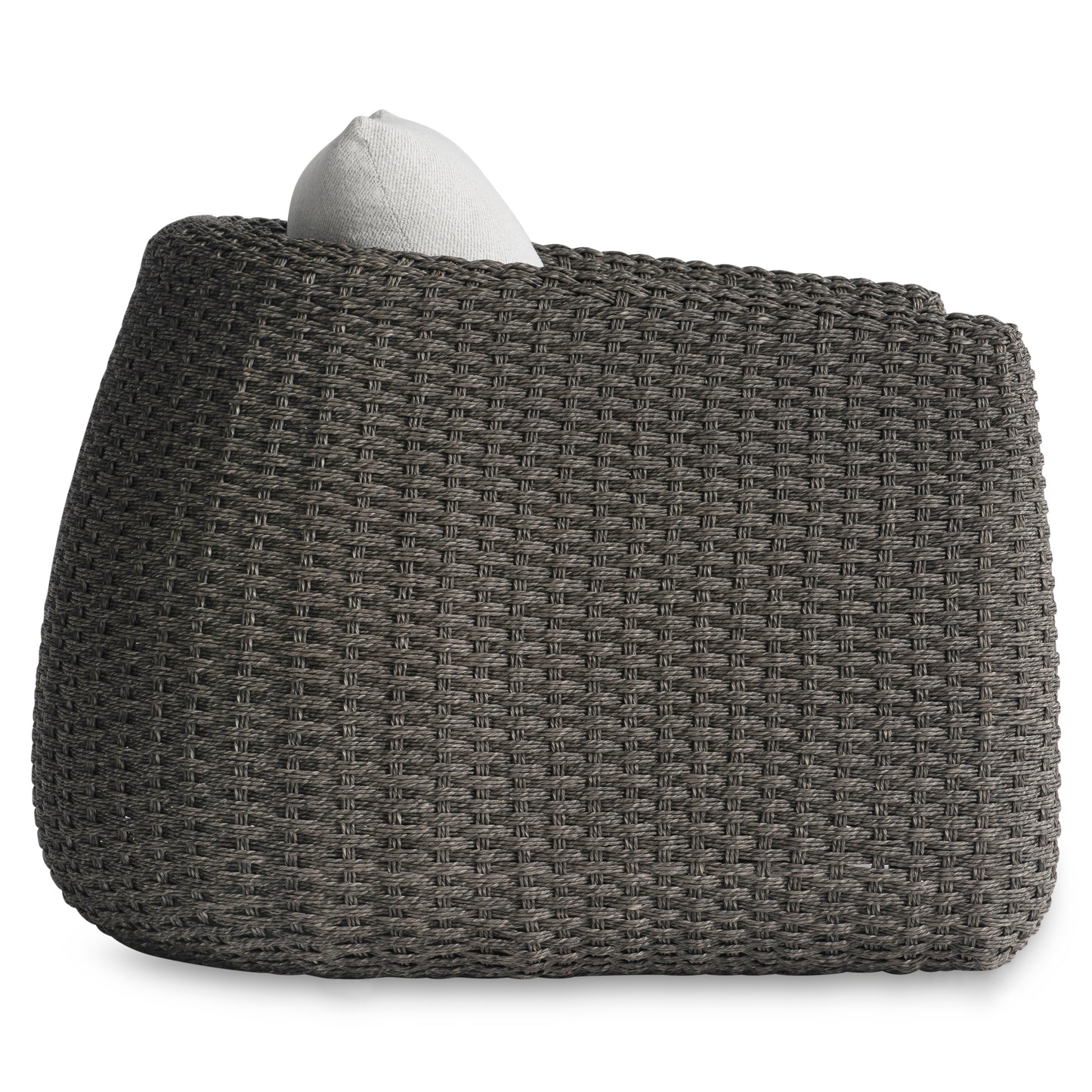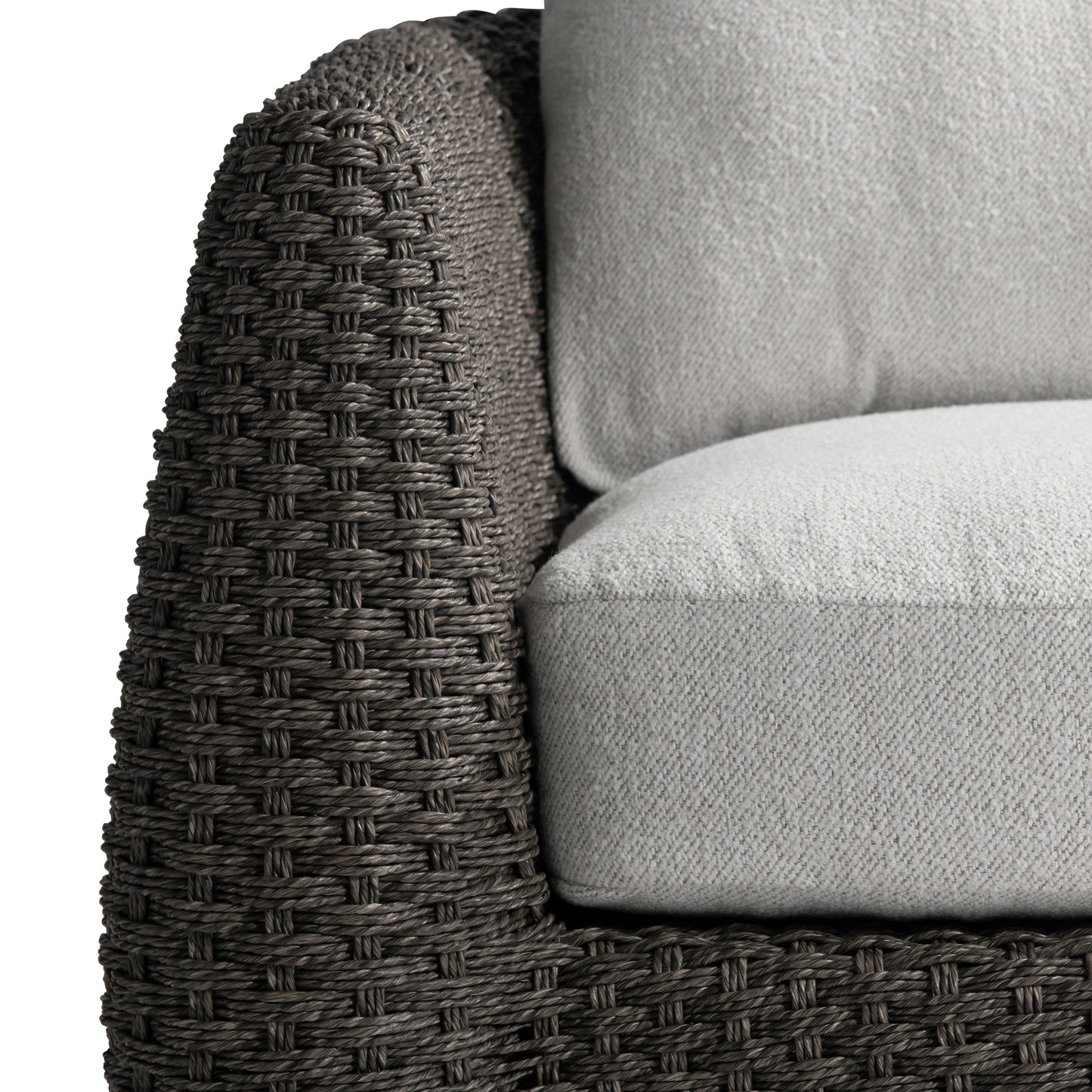 A generously rounded profile makes a distinctive style statement in the Sarene outdoor chair. The arms arc gently away from the seat on an all-weather woven frame. A deep back and seat cushion provide supreme comfort for outdoor living.