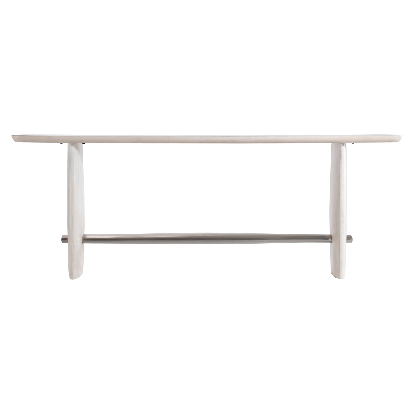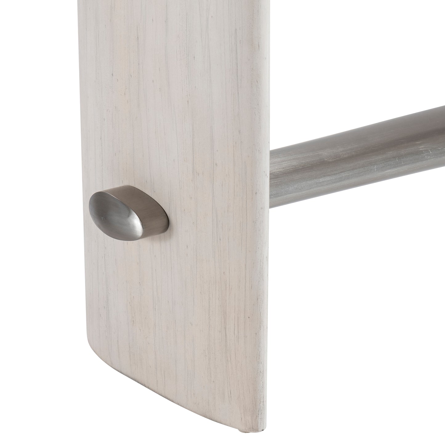 The Sereno console table makes a modern textural statement with cast resin support panels in textured wood grain look in the Lutra finish. They support a wood top, also in the Lutra finish. A brushed stainless steel stretcher in a Nickel finish pierces the side panels for a modern style.
