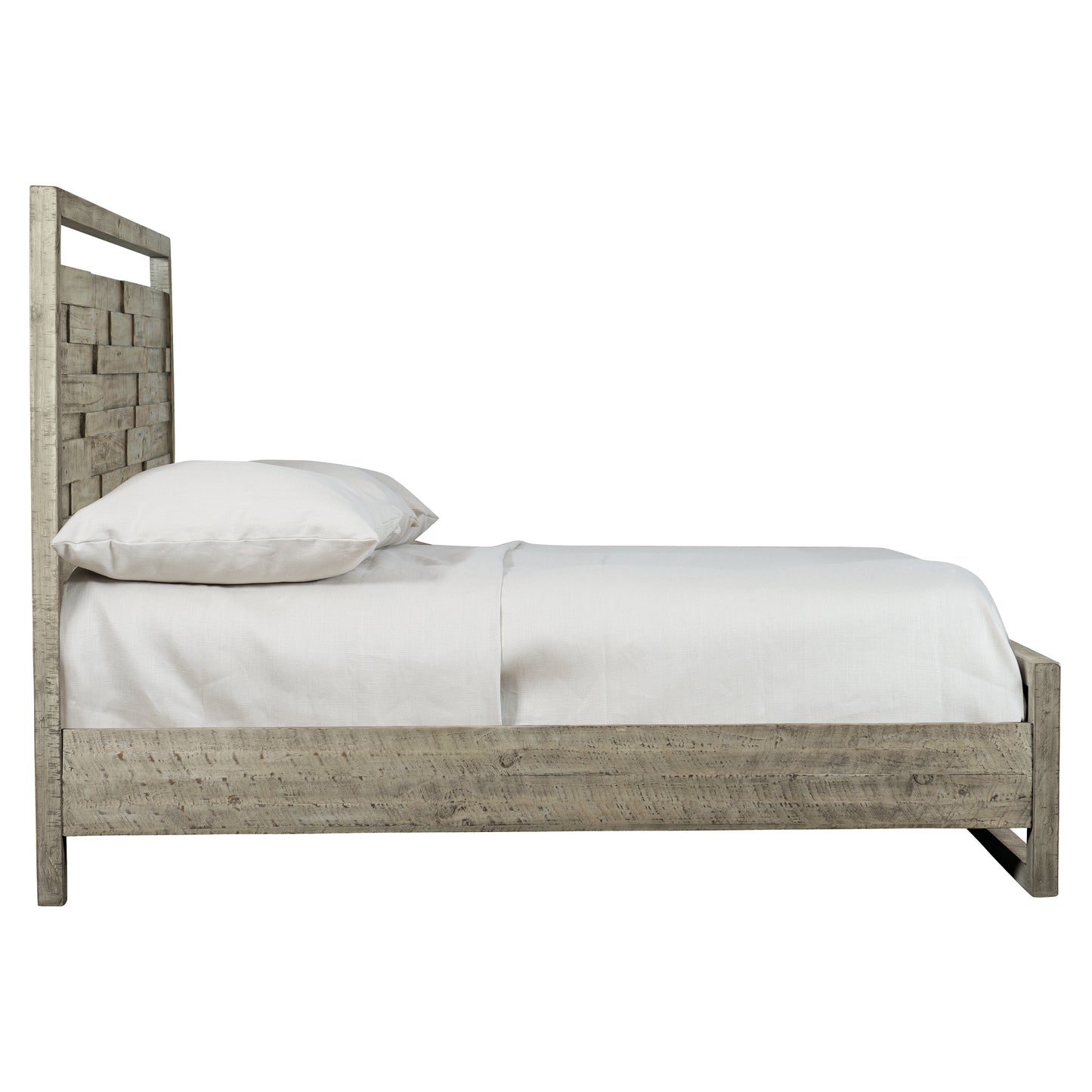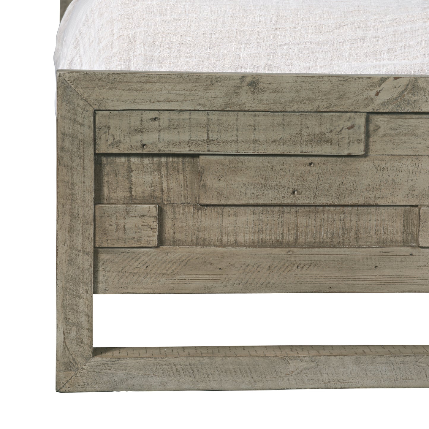 The Highland Park collection blends the best features of mid-century and farmhouse design, delivering an eclectic appeal with a laid-back vibe. The Shaw panel bed adds layers of rustic texture to a clean, modern form. Reclaimed pine planks of varying lengths and widths create dimension and lend the feeling of a found object. The distressed pine is finished in a muted gray Morel, highlighting the grain and imperfections in the wood.