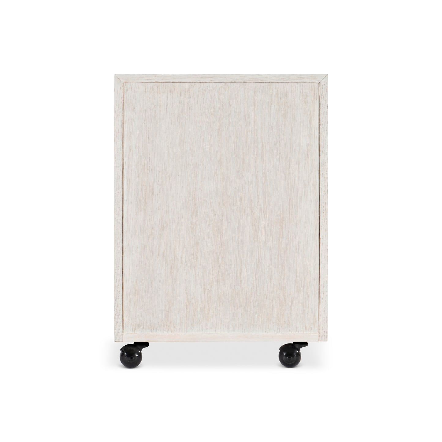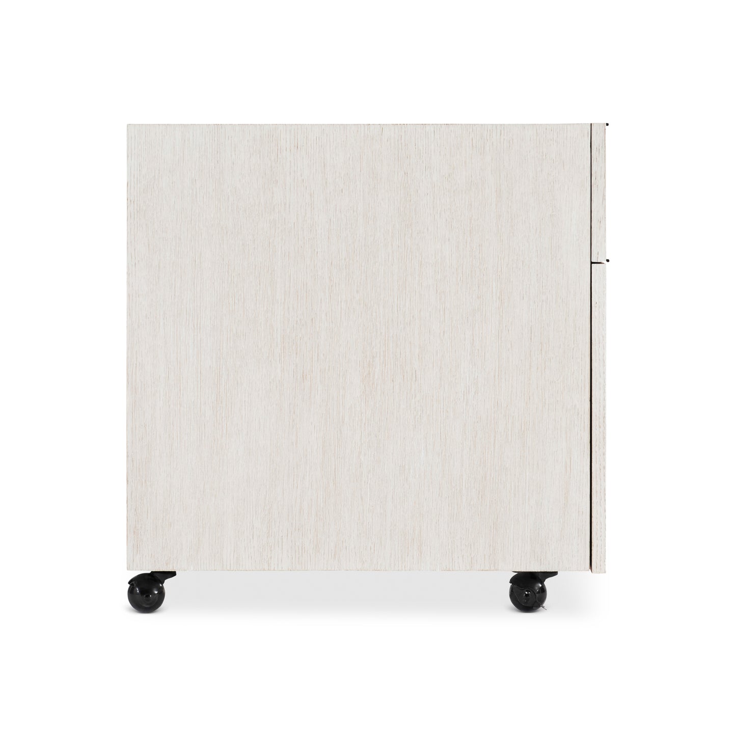 Weathered Bone finish on file cabinet and two drawers with removable hanging rods that accommodate letter or legal size files. Non-marring black casters. Front casters must have locking feature.
