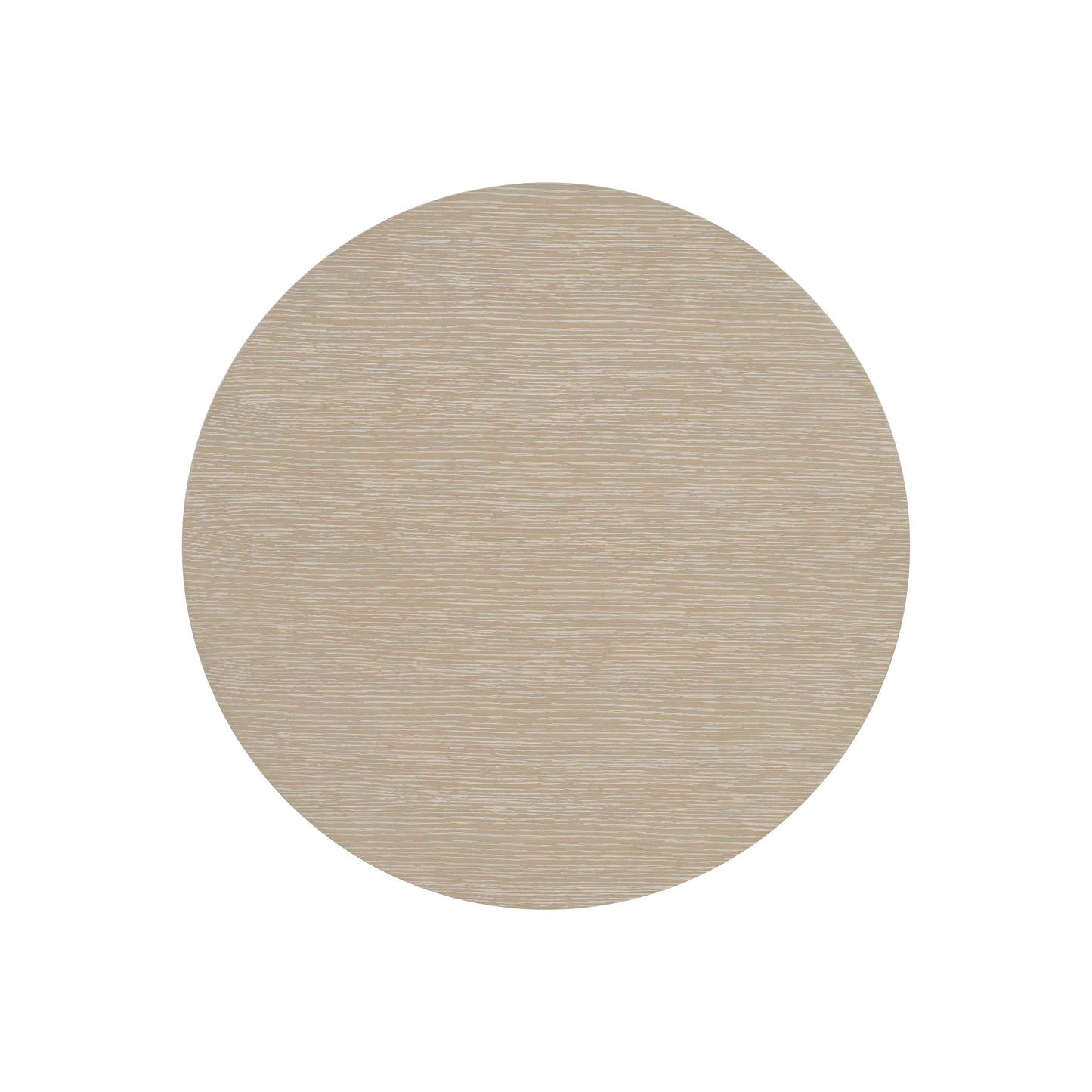The precise folds of origami are the inspiration for the geometric base on the Solaria side table. Cast in aluminum in Shiny Nickel finish, the stunning support draws all eyes, while the circular wood top balances the look with a softened counterpoint, featuring quartered white oak veneers in a Dune finish.
