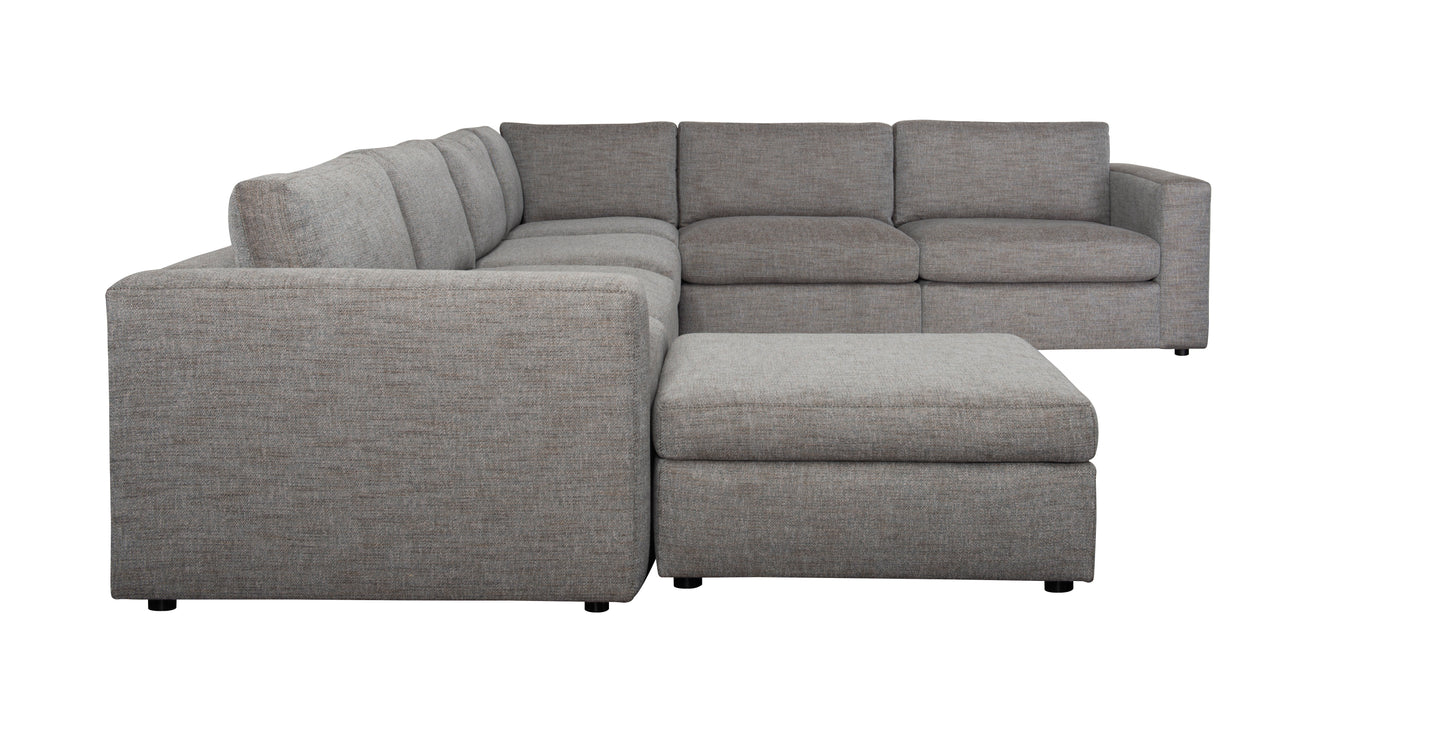 Grand in scale, the Stafford armless chair offers luxurious comfort with sleek, minimalist style. A plush cushion and fiber back pillow provide unmatched comfort. Balanced proportions and clean stitching create a look that is modern and sophisticated, but relaxed and inviting.