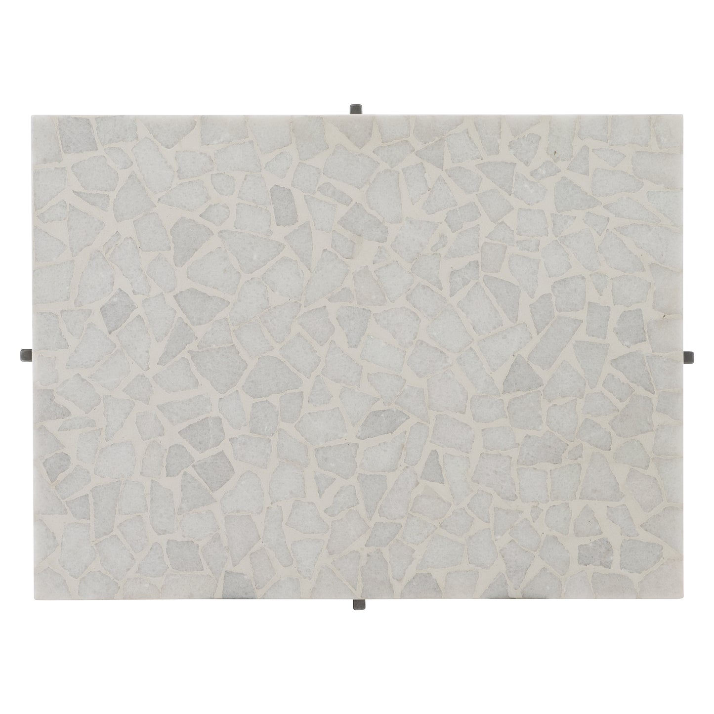 Terrazzo stone top with polyurethane protective top coat Poweder-coated stainless steel base in Flint Gray finish Adjustable glides
