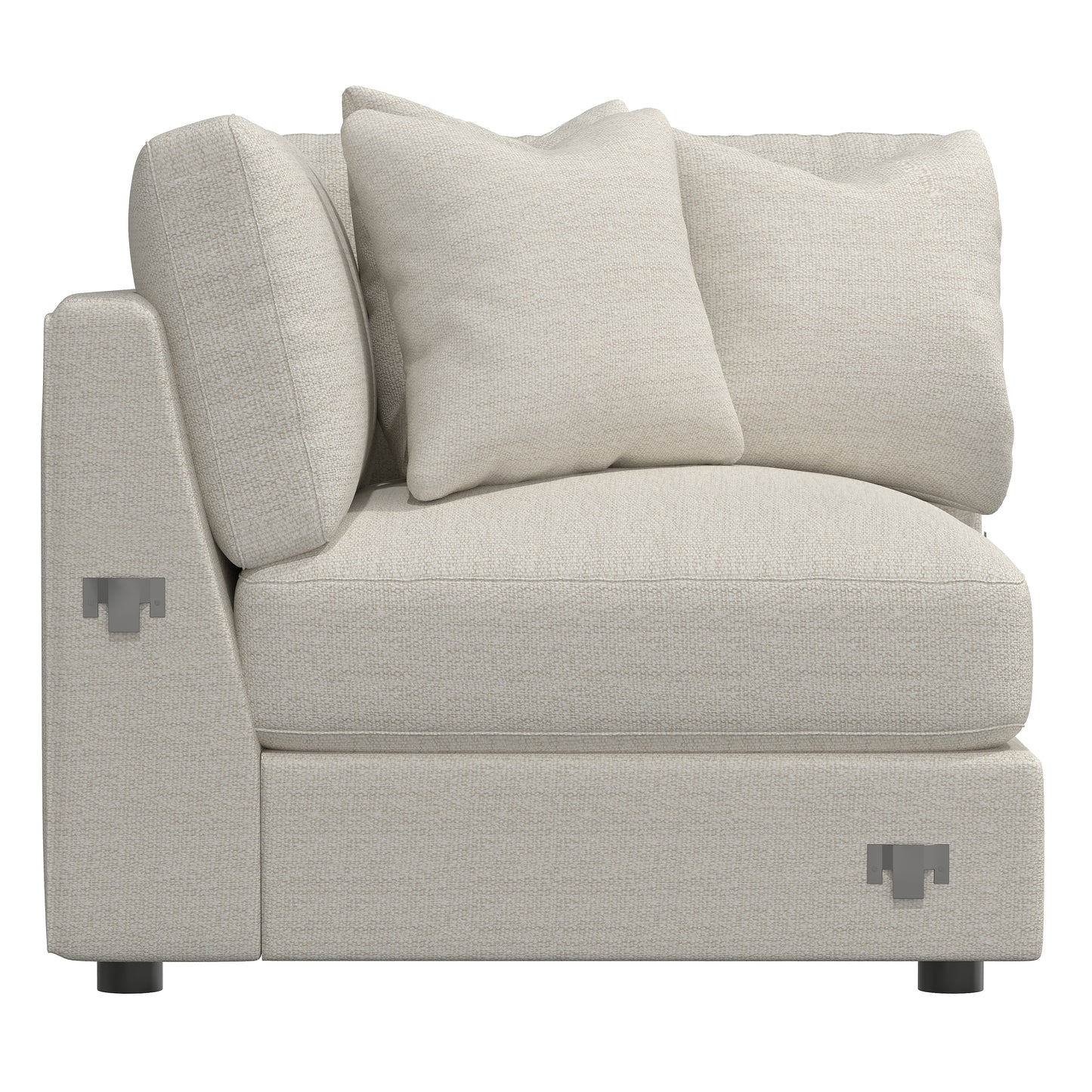 The Sydney corner chair balances linear elements and plush cushioning to create luxuriously comfortable seating. The modern design features clean lines, a deep seat and barely visible feet that contribute to the streamlined look. Subtle and sophisticated, this piece effortlessly complements its surroundings.