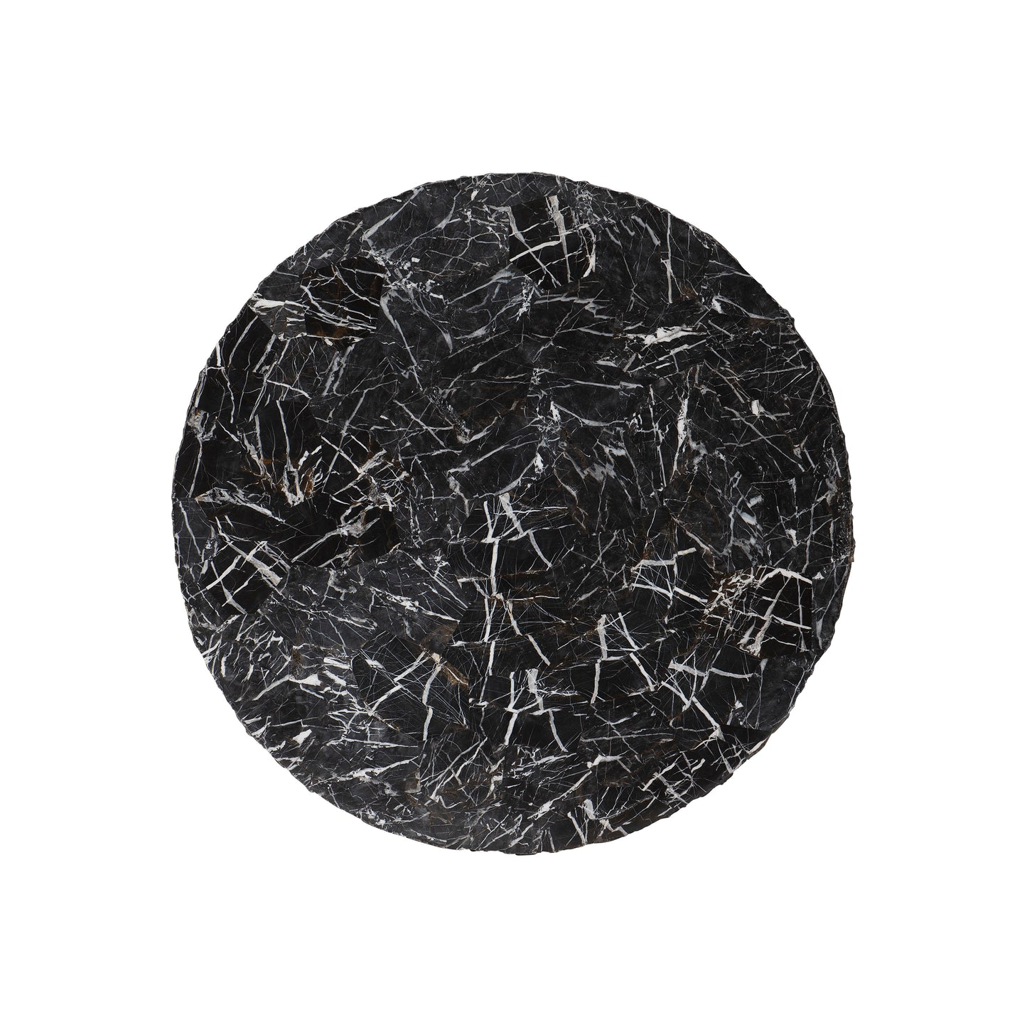 Laminated Black Onyx stone. Round table with smooth top and rough sides. Adjustable glides.