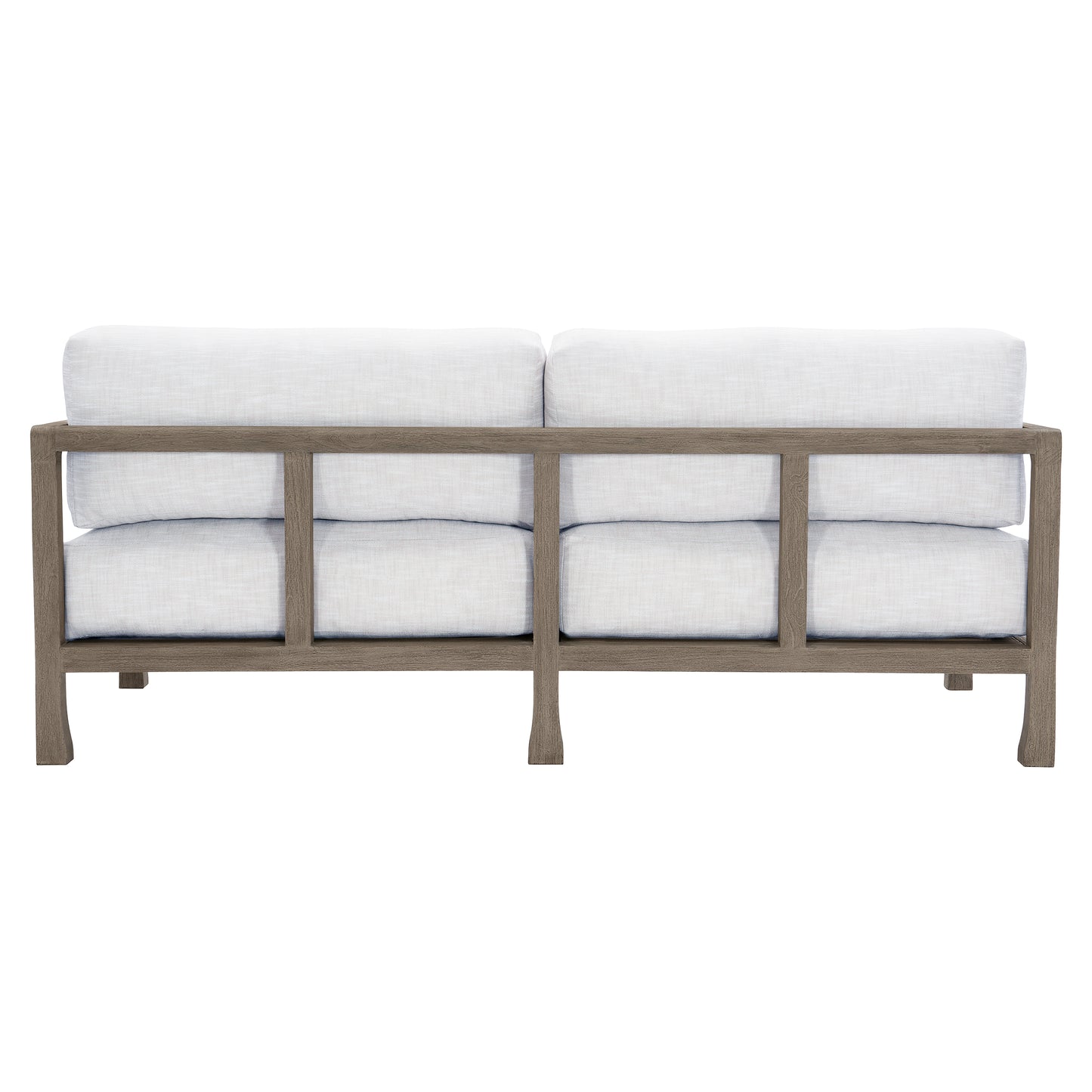 Simply designed and finely crafted, the Tanah sofa combines clean lines and geometric angles for a distinctly modern look. The open frame is crafted from weathered teak, a naturally durable and water-resistant material that grows more beautiful with age. Dressed in performance fabric, fiber back pillows and deep, sumptuous cushions provide unrivaled comfort. A stylish, sophisticated sofa for the luxe outdoor space.