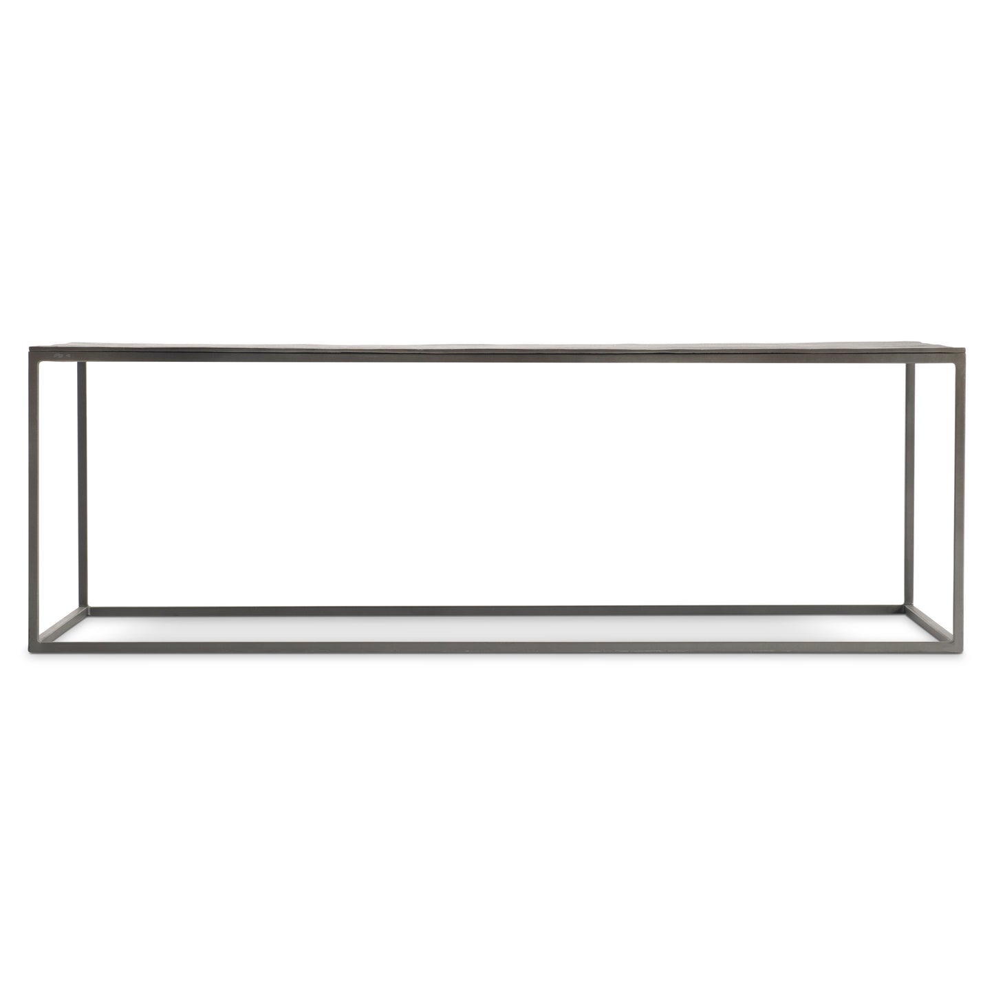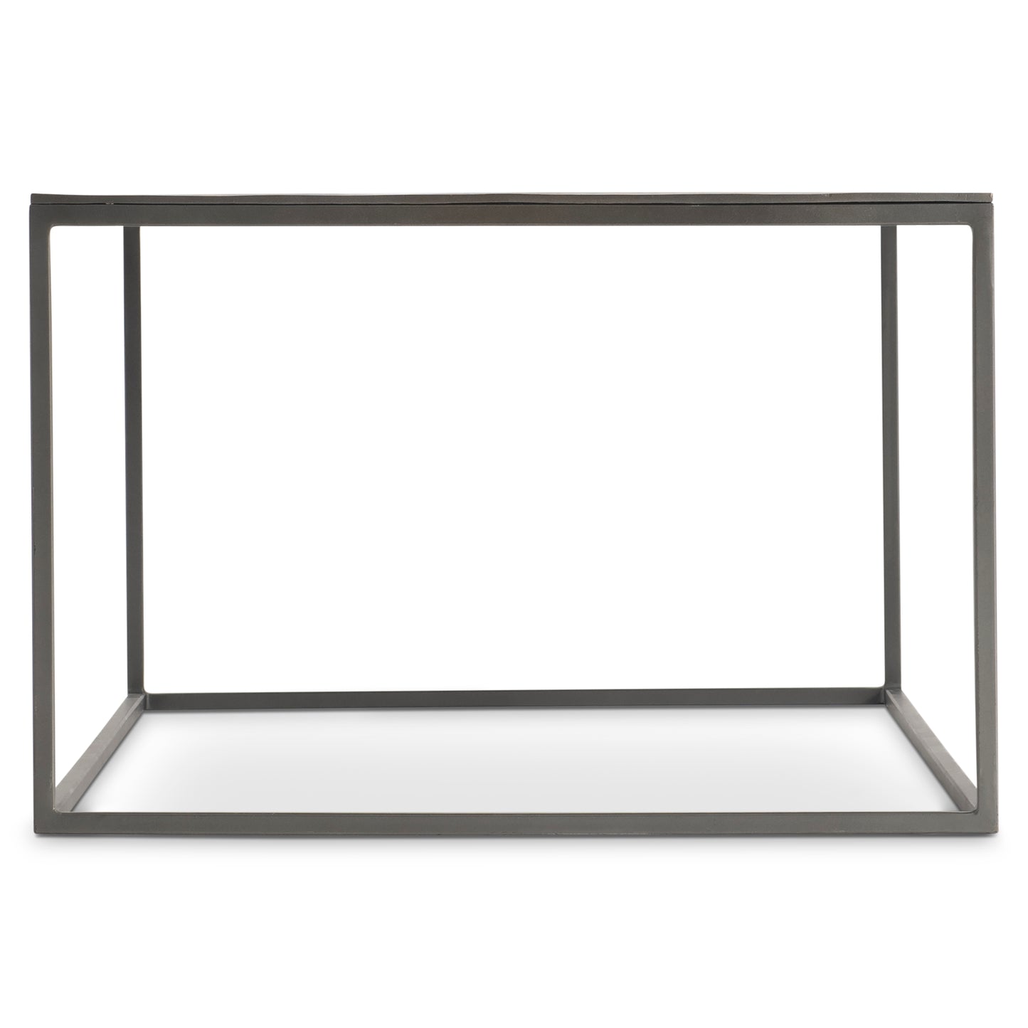 Cast aluminum forms the deceptively simple base of the Thompson cocktail table. The light frame supports a metal top finished in Graphite, giving it visual depth and an industrial style.