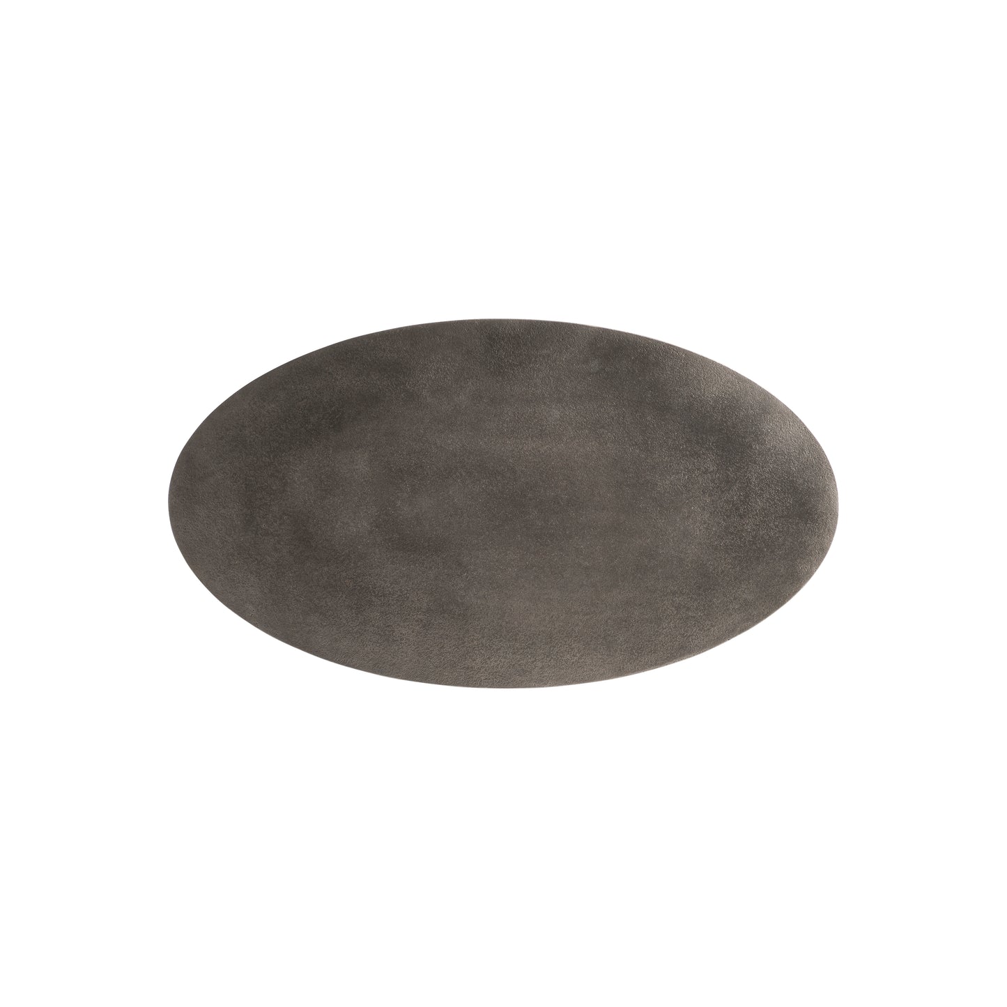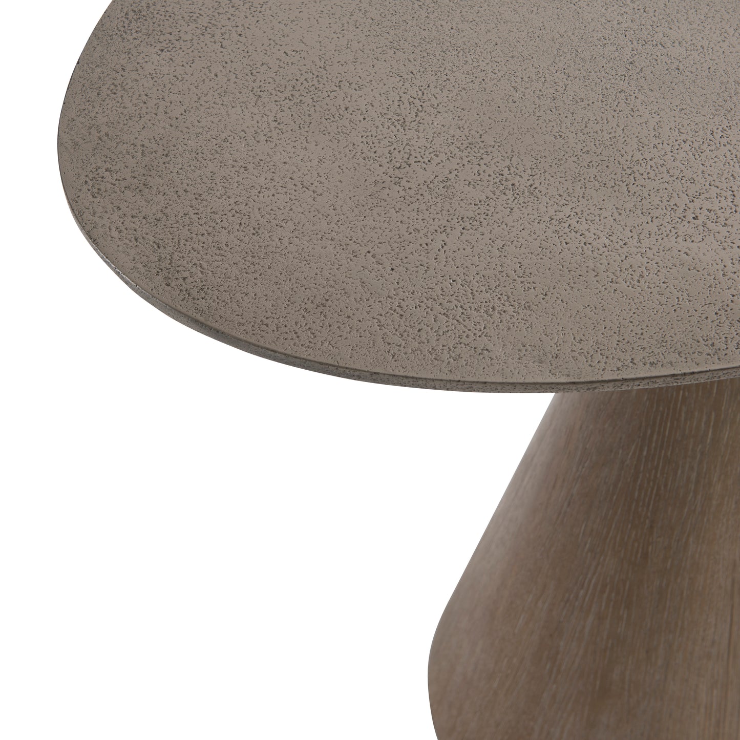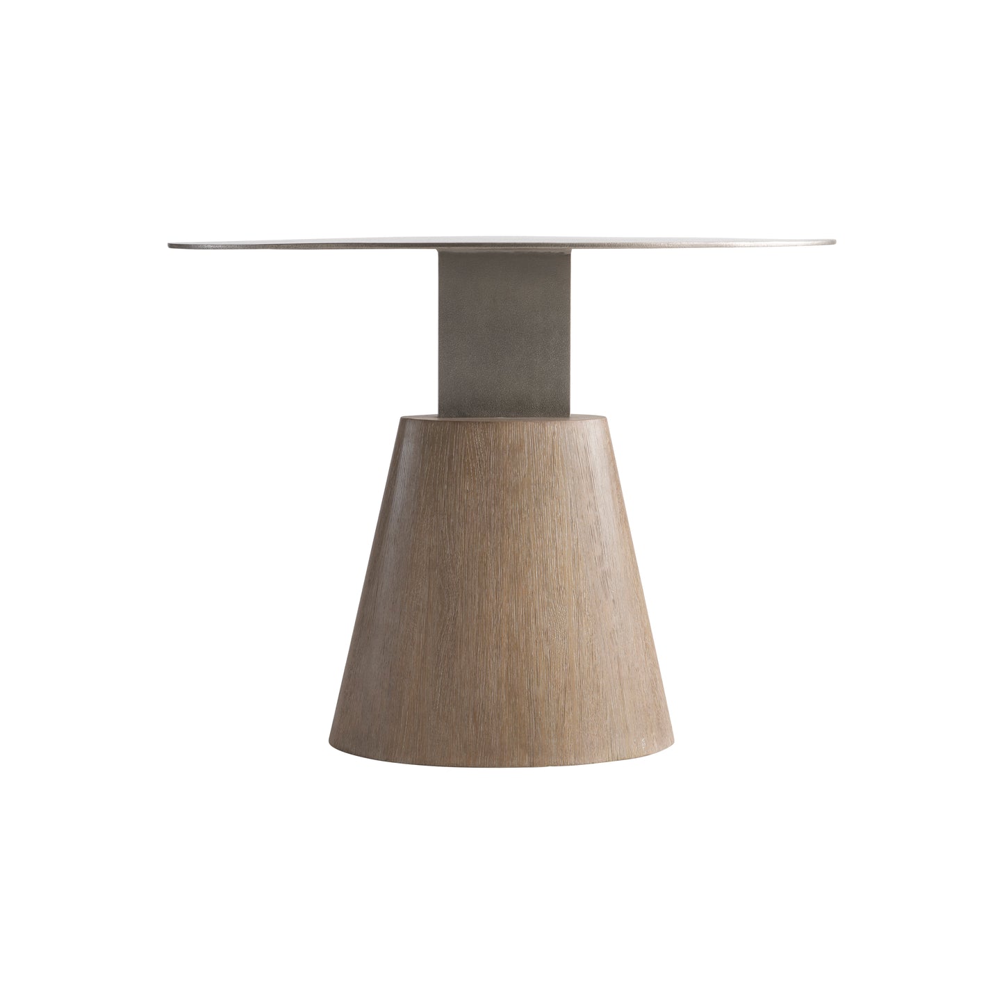 Modern shapes are crafted into a cutting-edge design for the Titus nightstand. A cast aluminum oval top rises from a wood base, held aloft by a cast aluminum rectangular pedestal. The metal is featured in a Graphite finish that perfectly complements the Sandbar finish on the base.