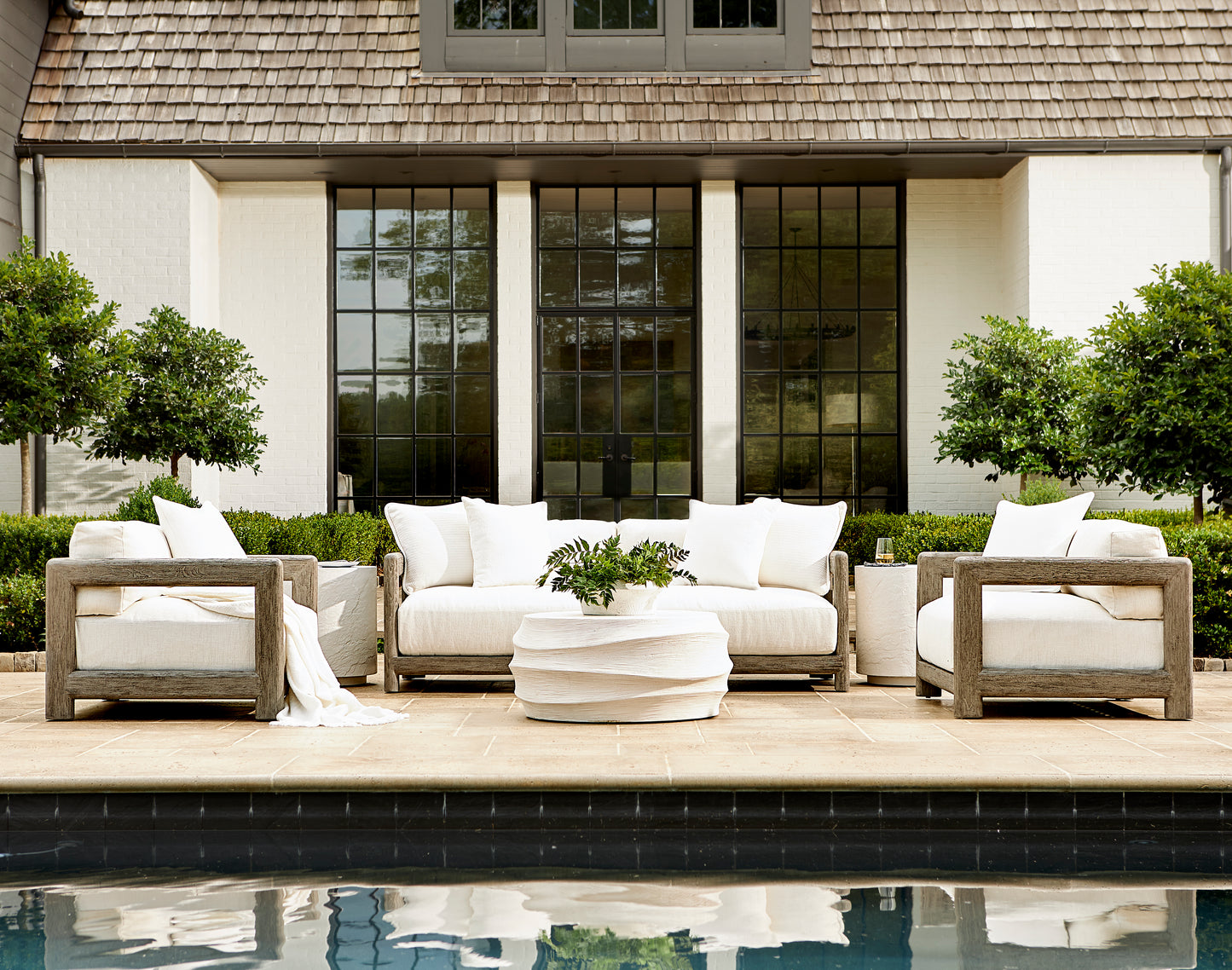 Simplicity is given stunning style in the Trapani outdoor side table. The sleek round table is designed with glass-reinforced concrete over a plinth base in Smooth Quarry finish. The result is a smoothly modern and striking form that is at home indoors or out.